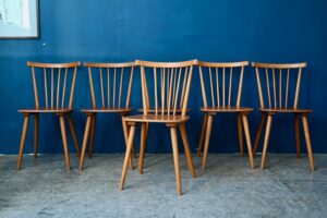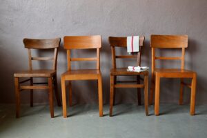 Chaise, tabouret, fauteuil vintage, rocking chair, chaise d’appoint et chaise longue, il y a bien des façons de poser ses fesses! A l’Atelier, les séries de chaises dépareillées nous réjouissent et surtout nous évitent le cruel dilemme de choisir entre la chaise bistrot Baumann et la chaise industrielle Tolix® au piétement tubulaire ou la chaise d’école au look minimaliste, le style midcentury aux pieds compas et le mobilier design scandinave en teck, les modèles touchants élaborés par René Gabriel, chef de file du mobilier de reconstruction et toutes les consœurs issues du design iconique. En fibre de verre telles que les fameuses Eames, les coques en plastique façon Space Age et les versions chrome chères au design italien et au mobilier Bauhaus, les matériaux sont nombreux et offrent de multiples possibilités: le design de la chaise est innovant. Version mobilier rustique ou traditionnel, les Thonet, Fischel et autres Luterma en bois courbé ne finissent pas de nous séduire pour leur côté primitif, authentique et surtout intemporel.