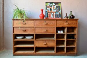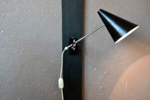 L’équation paraît simple, une table de travail, une bonne lumière et une assise confortable… mais comme la déco est plus créative que mathématique, il est indispensable d’être plus créatif que studieux. Un joli bureau en bois et métal, typique du design français des années 50, une table à dessin d’architecte, un ancien établi d’atelier, un grand bureau scandinave en teck aux lignes organiques ou encore une ancienne table de ferme… Voici un espace de travail désigné. Une lampe à poser minimaliste, une applique Art Déco, une lampe accordéon Bauhaus, une lampe d’atelier Gras (le must!!!) voici notre espace de travail qui s’éclaire… Une chaise bistrot, un fauteuil pivotant au design international, un Pollock tapissé de cuir, une chaise en fibre de verre colorée Eames ou un fauteuil Baumann maître d’école, notre espace de travail devient confortable… Et pour couronner le tout, du rangement : petit meuble, caisson, enfilade à panneaux coulissants, meuble rideau et des caisses et tiroirs pour classer et organiser, au boulot mais dans le plaisir!!!