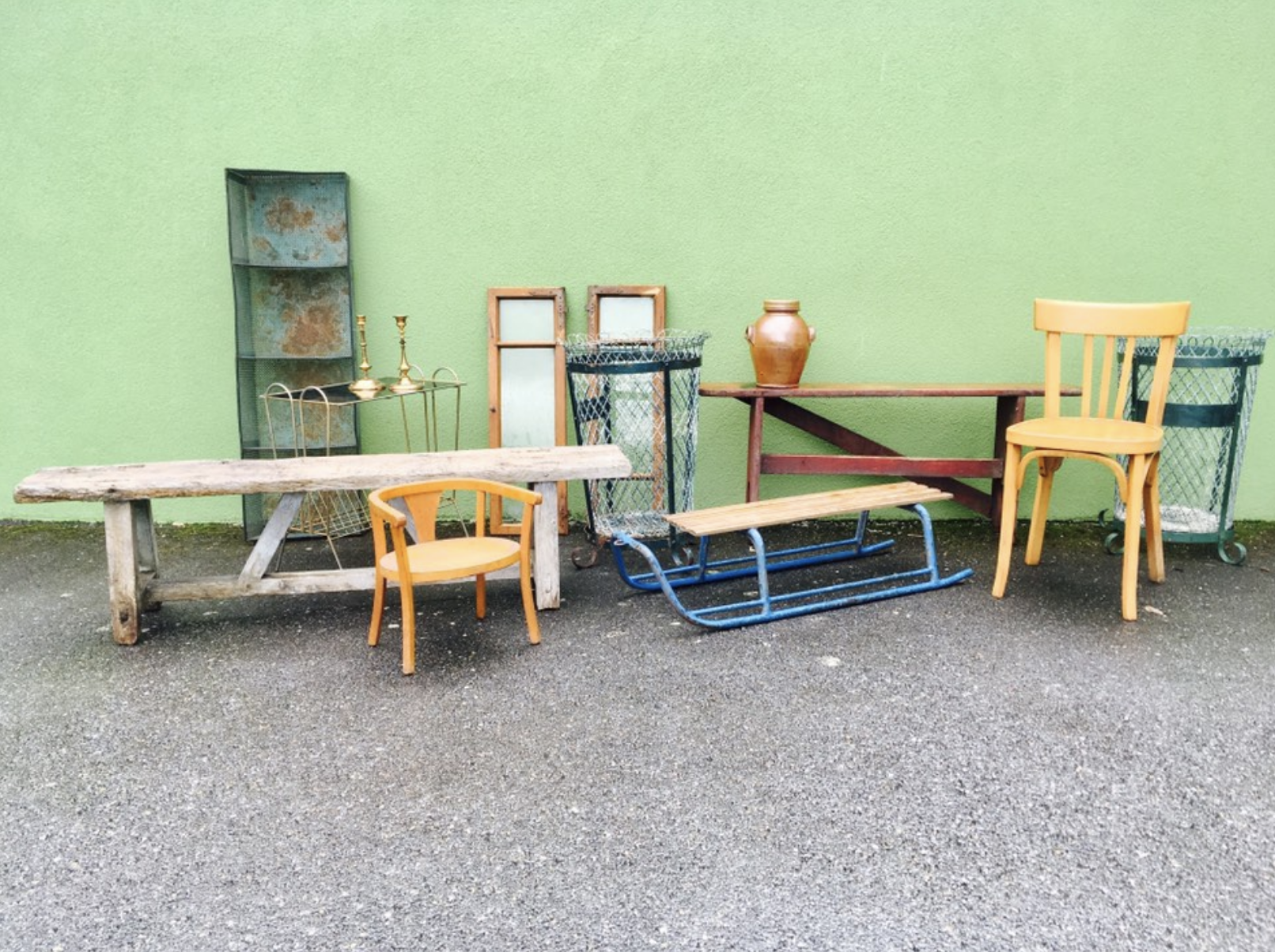 Nous sommes heureux de partager avec vous nos petites trouvailles du jour, chouettes meubles anciens rustiques et authentiques! Des nouveautés qui provoquent de belles émotions! Bancs en bois superbement patinés, chaises Baumann pour petits et grands, corbeilles de square des années 50, casier Matégot, vinaigrier en grès, fenêtres anciennes et console vintage… Y a d’la joie!