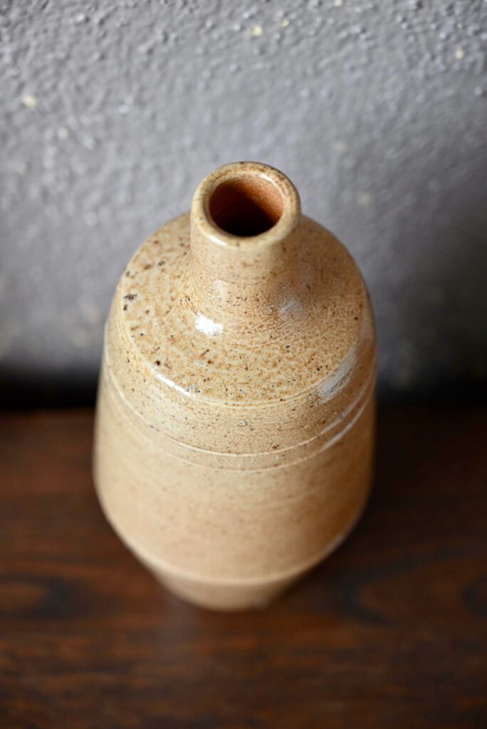 Ambiance campagne chic, nuancée de teintes wabi sabi pour cette jolie série de 3 bouteilles anciennes en grès. Joliment tournées, épaisses et toutes nuancées et différentes, ces objets usuels anciens se prêteront au jeu de toutes les compositions déco.