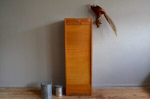 L’armoire est ancienne et date des années 20. Destinée aux vestiaires, elle comprend deux portes panneautées et des petites plaques d’aération en métal dans son fond. La peinture est d’origine, très patinée. On devine différentes couches de peinture beige et surtout vert eau, un des flancs est beige. L’armoire est en sapin. Les loquets en métal sont d’origine, l’armoire ferme sans clef. Stable, de belle facture, le vestiaire est fonctionnel. Le bois à été traité et entretenu. Le vestiaire n’a plus d’étagères, il est doté d’un système de crémaillère pour installer celles ci. Le meuble est ancien, il a été utilisé avec intensité. Il est particulièrement patiné par les ans.