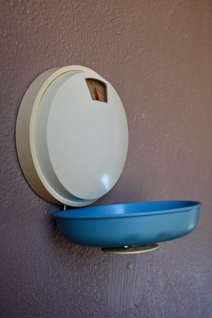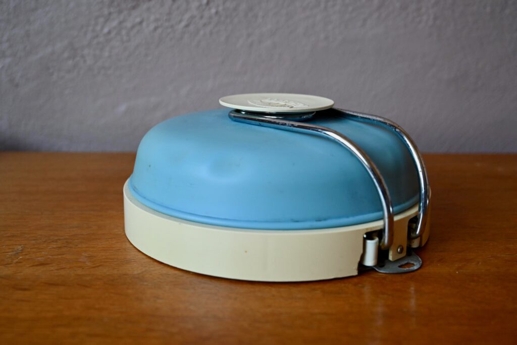 Plongée directe dans l’ambiance d’une cuisine danoise des années 60. Jadis objet usuel et quotidien, cette jolie pièce de design scandinave apportera sa touche de décoration rétro et son vécu dans votre intérieur. En plastique et métal bleu ciel, elle se fixe au mur et est escamotable. Le charme de cette balance aux lignes pas communes et à la couleur sixties opérera encore longtemps, dans une cuisine, une épicerie fine ou pourquoi pas dans la salle de jeux de minichou !