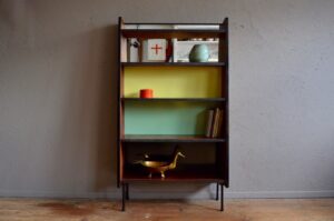 Voilà une superbe pièce de design scandinave, à la fois sobre et remarquable! Dans le genre des productions de Johannes Andersen ou de H.P. Hansen, cette bibliothèque vintage des années 50 en teck massif est un joli bijou. Ses lignes sont douces, le bois noble et, les chants massifs et les points d’assemblage très élégants… Ses dimensions font d’elle une bibliothèque ou étagère facile à intégrer dans n’importe quel type d’intérieur…