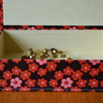 Écrin délicatement bohème et délicieusement pop pour les bijoux précieux comme pour les affaires de couture, de bricolage, cette boîte est faite de carton et de tissu. Son design, tout en finesse, met en valeur les trésors qu’elle contient! L’habillage de tissu, à motif fleuri et pop, lui donne un caractère enfantin et rêveur. Rangement pratique, elle trouvera facilement sa place dans une salle de bain ou sur un bonheur du jour.