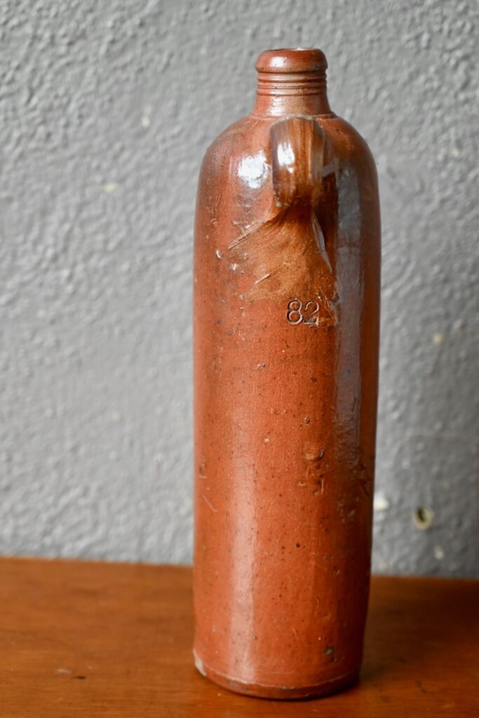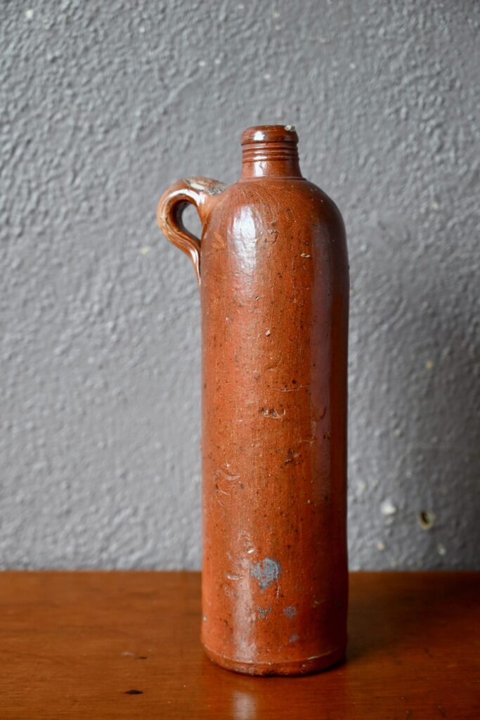 Cette jolie bouteille en grès est une céramique usuelle ancienne. Elle était jadis destinée au stockage et à la conservation des liqueurs et eaux de vie. Pièce touchante, emprunte d’une simplicité et d’une authenticité campagnardes, c’est une production antique alsacienne.