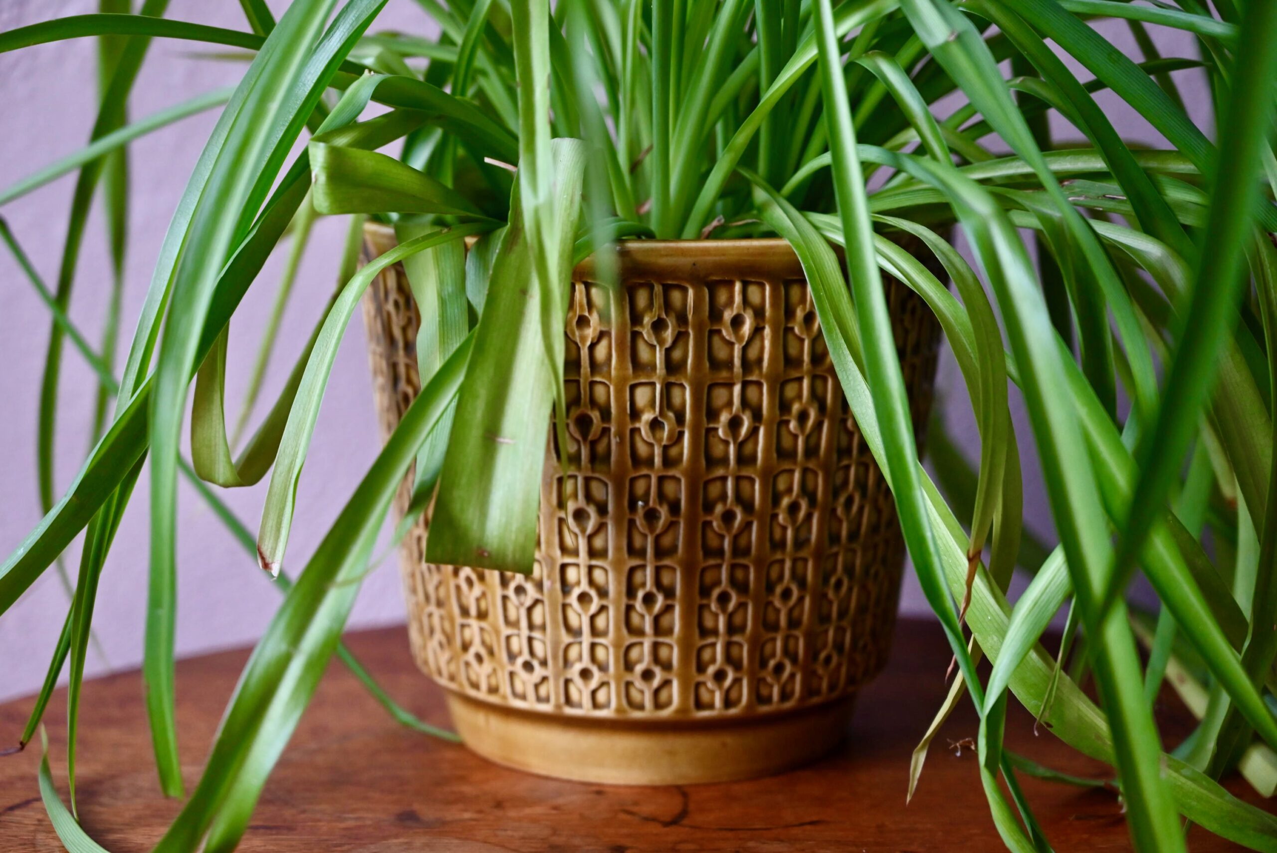Ce joli cache-pot est en céramique de couleur jaune moutarde. Il possède une surface travaillée en relief de motifs géométriques. La jardinière est décorative et originale. Elle mettra en valeur les plantes vertes les plus exubérantes de la maison.