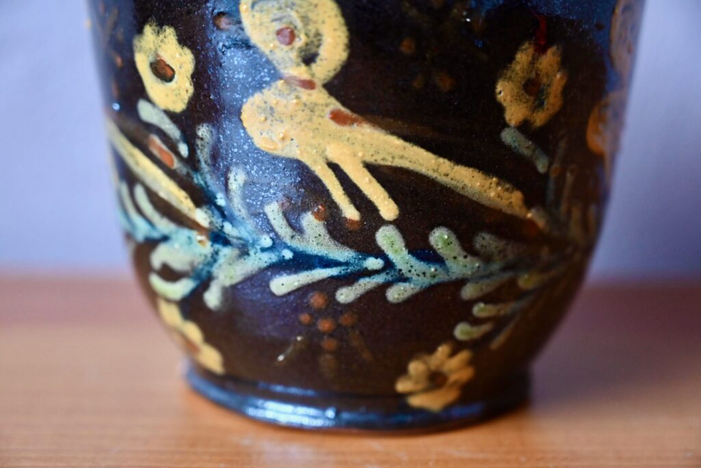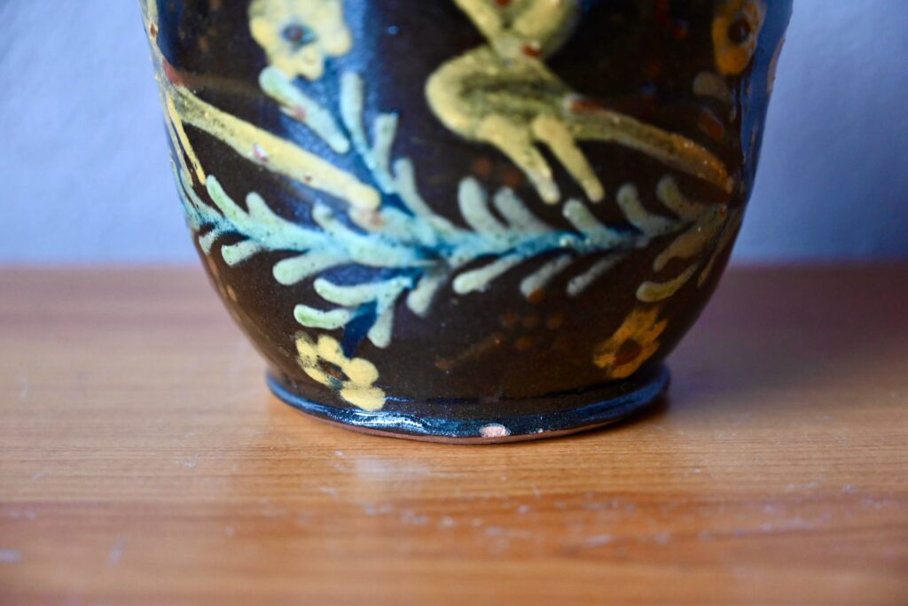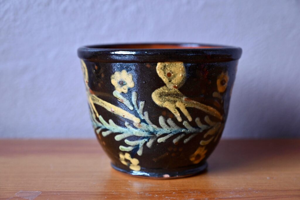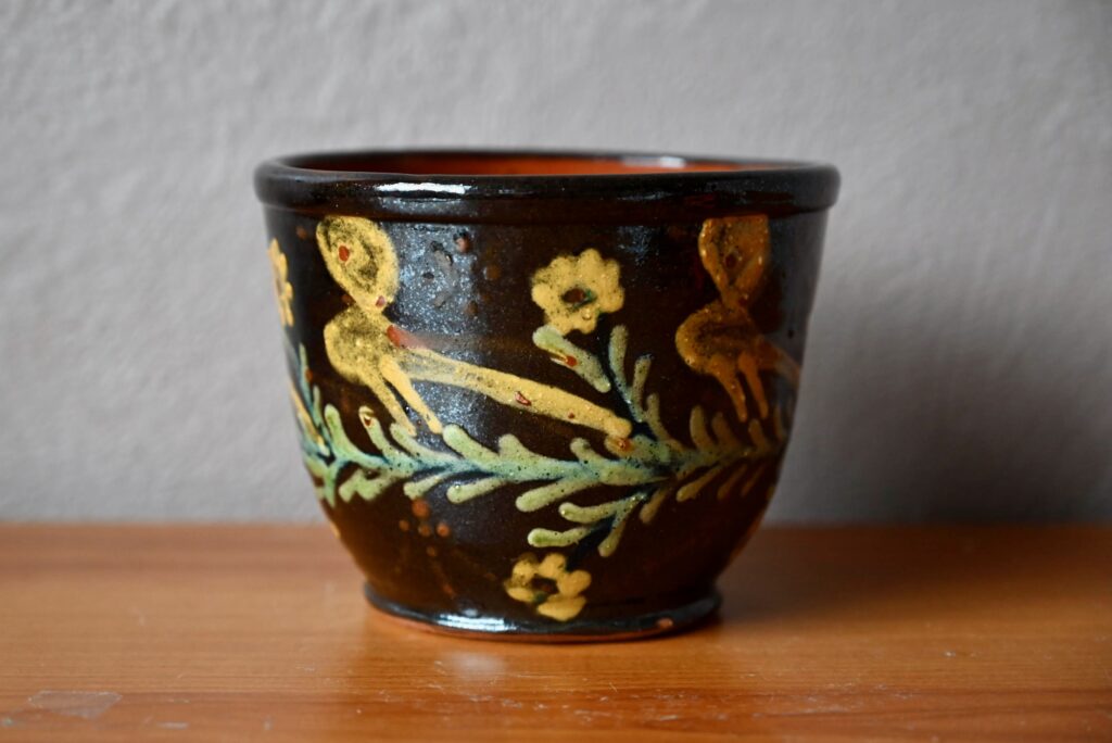 Production alsacienne en terre de Soufflenheim, ce cache-pot ancien est décoré de motifs floraux colorés sur fond noir. Bel écrin à l’esprit campagne et bohème, il sera parfait pour accueillir de jolies plantes d’intérieur.