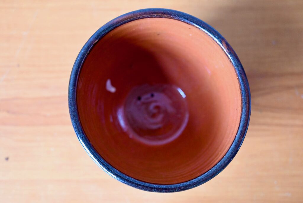 Le cache-pot est en terre cuite vernissé. Il est ancien, en très bel état malgré un petit manque discret visible en photo.