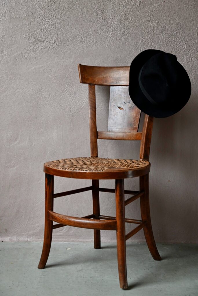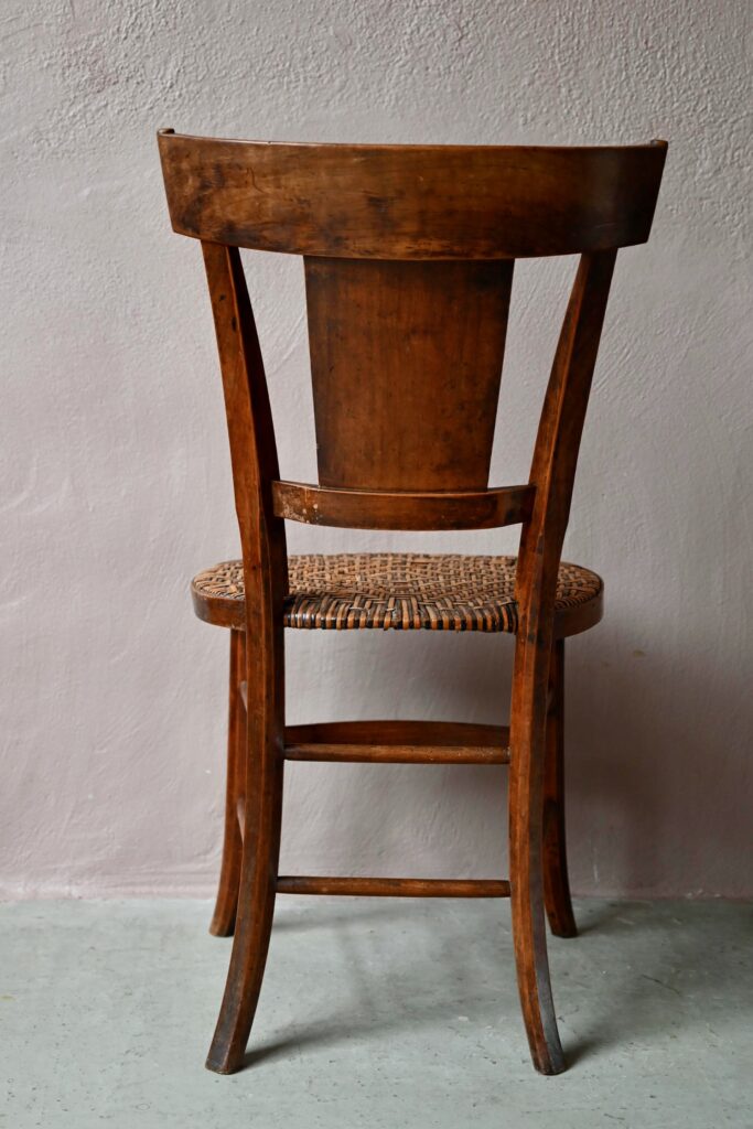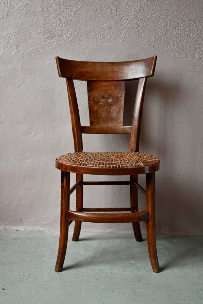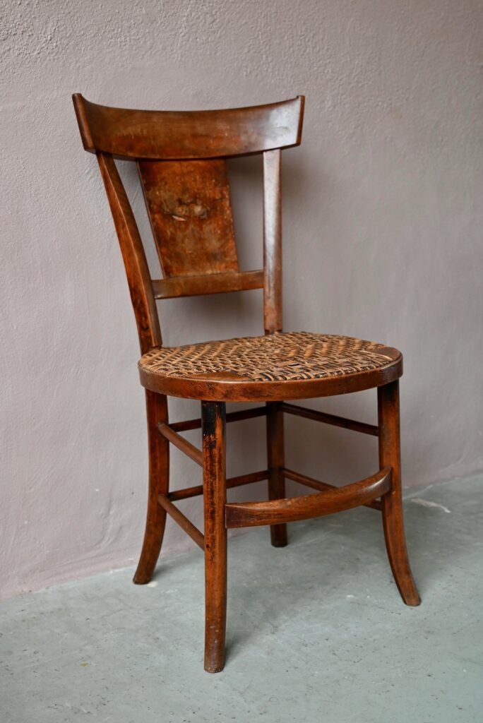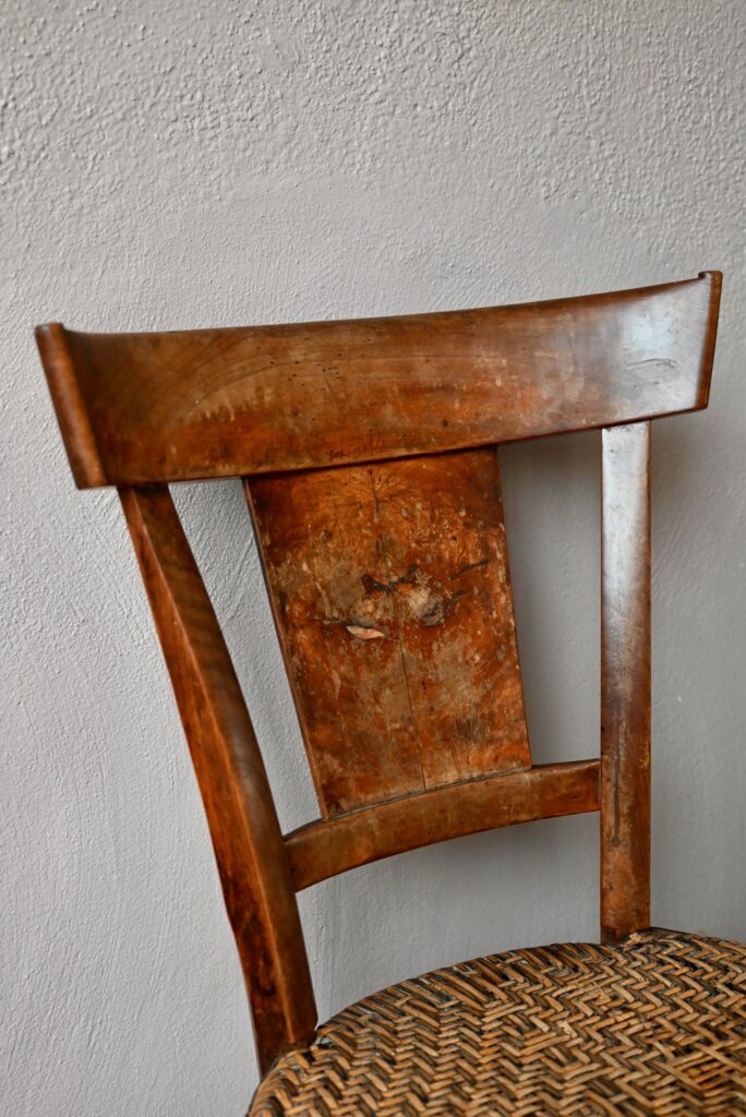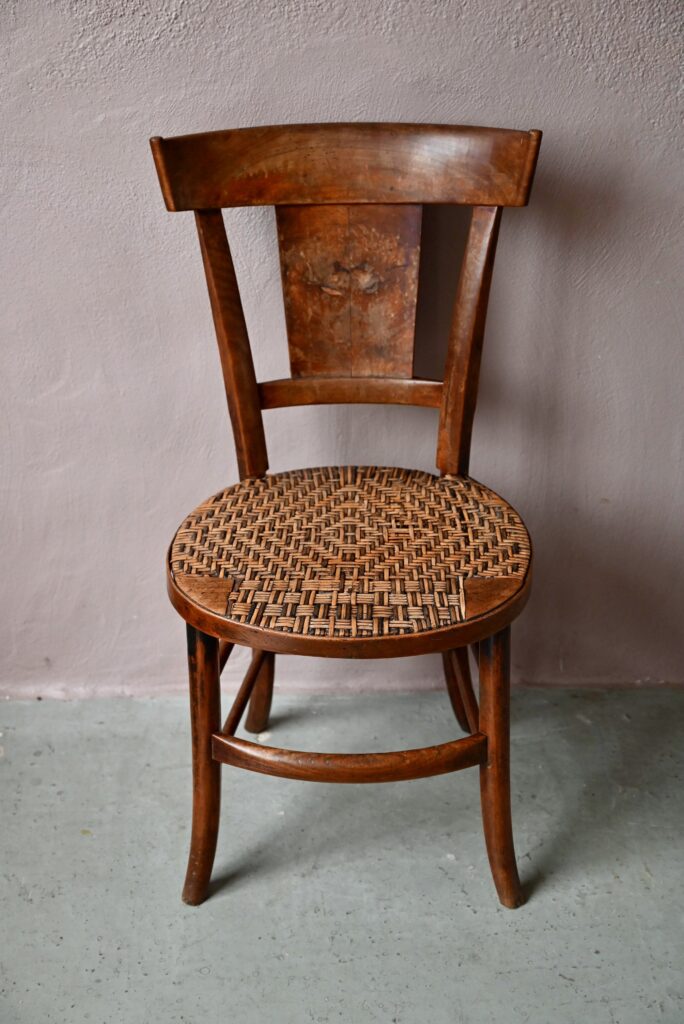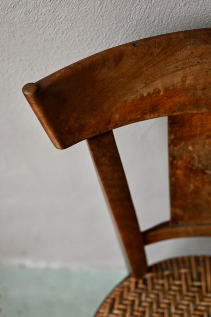 Cette jolie chaise en noyer de 1900 trouvera parfaitement sa place dans une décoration sophistiquée ou bohème. Sobre et joliment travaillée, nous l’imaginons pièce décorative ou valet dans une entrée, une chambre ou une pièce d’eau. Nous aimons beaucoup sa patine, la chaleur du noyer et son cannage serré plutôt original.