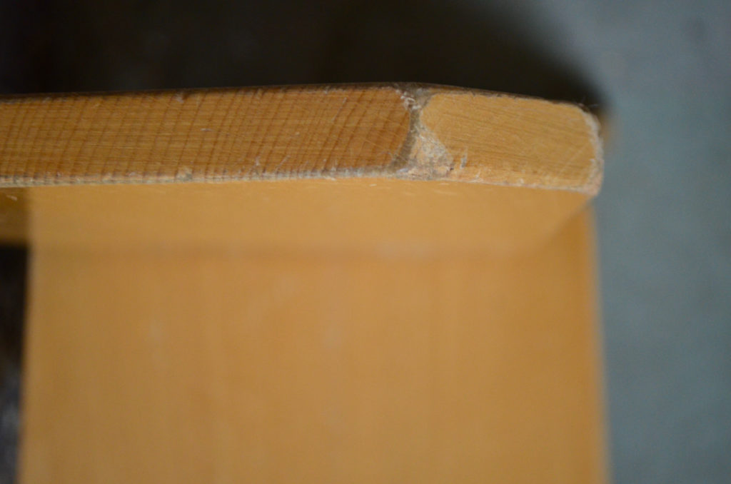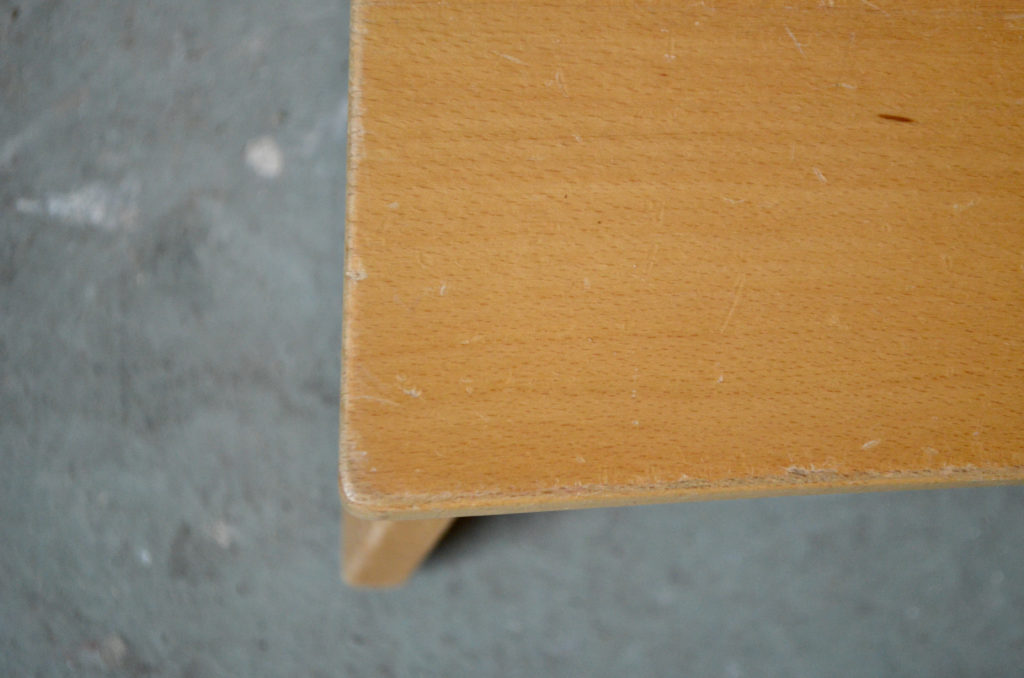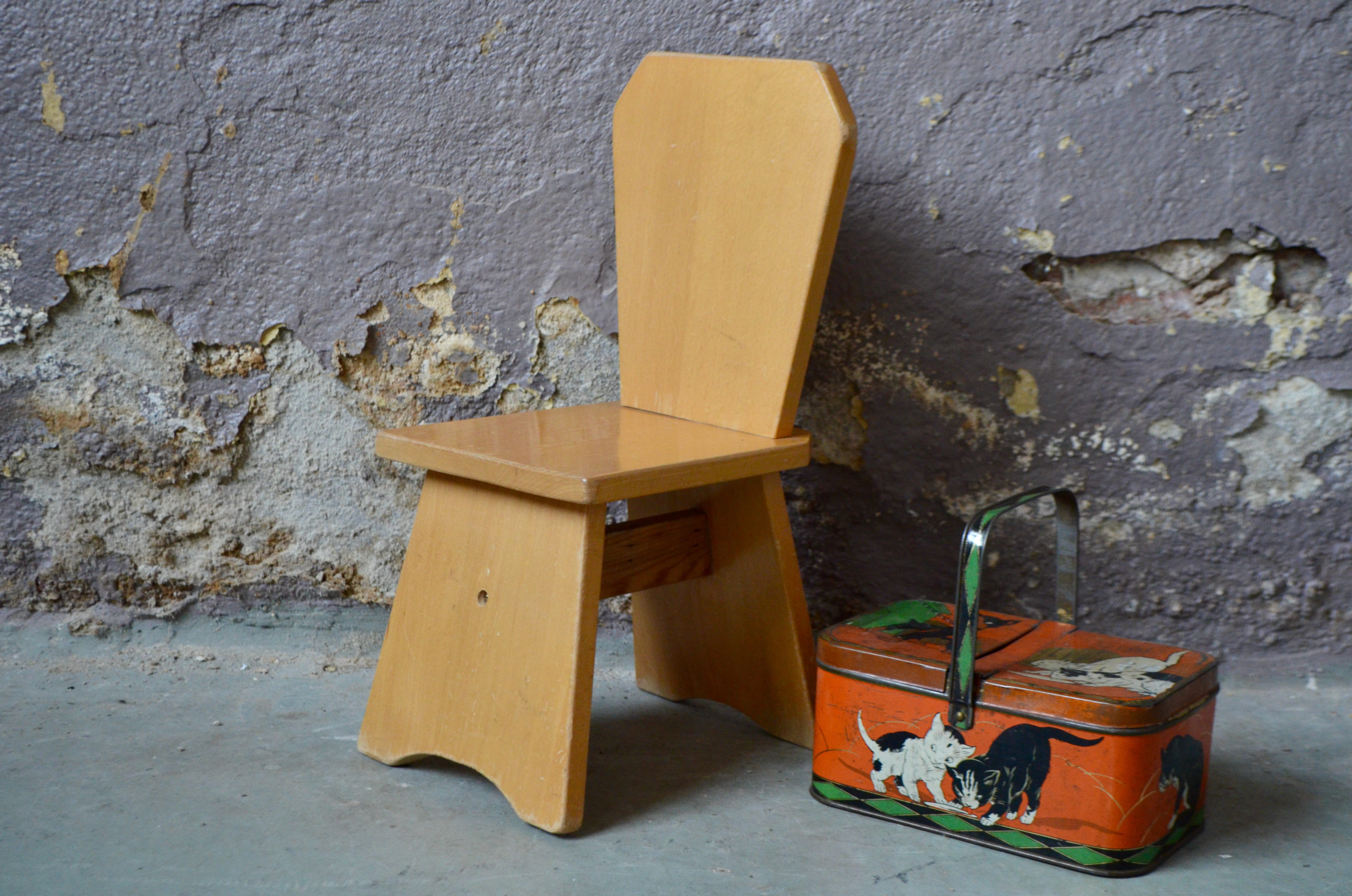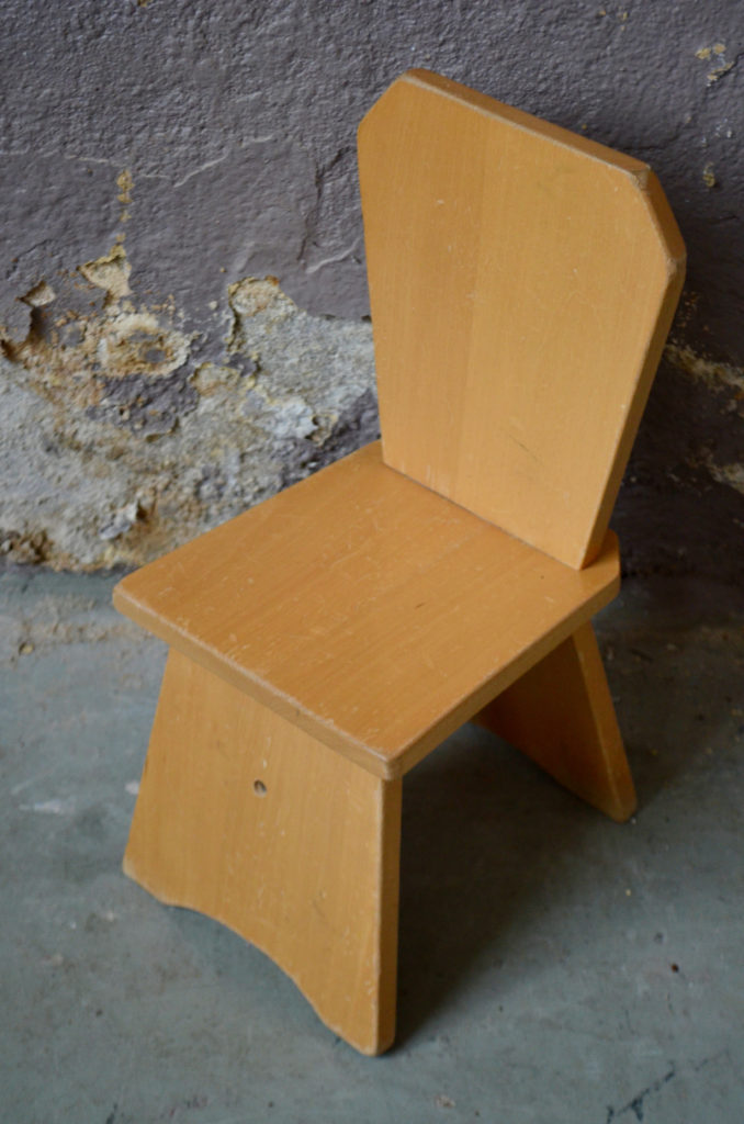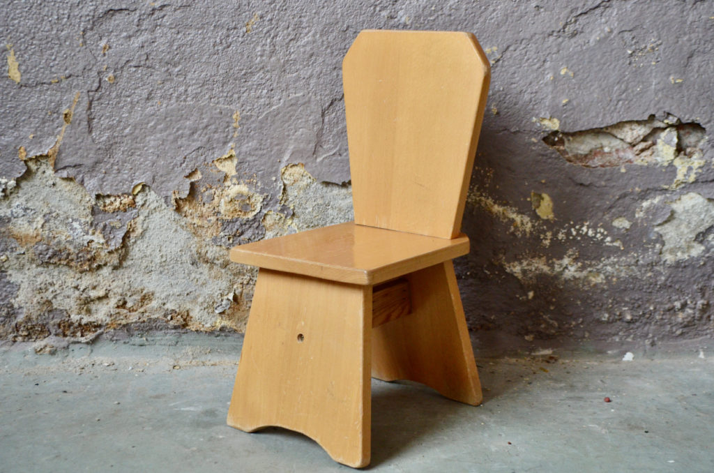 La petite chaise est constituée de planches de bois massif, sa silhouette est très originale, elle est en très bon état.