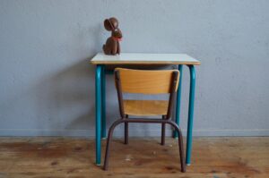 La conception du mobilier scolaire fait rimer simplicité, efficacité et solidité… pour notre plus grande joie. Cette petite chaise d’école ne déroge pas à la règle! Elle est réalisée en métal tubulaire rouge et bois contreplaqué. D’une simplicité enfantine, elle nous séduit et se révèle la compagne idéale des premiers dessins et bricolages.