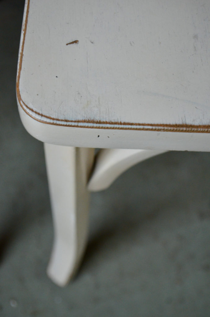La série de chaises est homogène. Elles ont été peintes d’une même couleur blanc crème par un précédent propriétaire et affichent une patine très présente et authentique. Stables et confortables, elles sont fonctionnelles et sont marquées par un vécu réel.