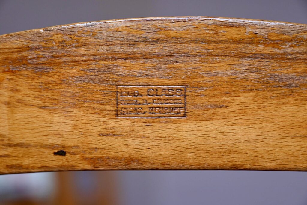 Les chaises sont anciennes, en bois massif. Elles sont en bel état. La teinte du bois est chaleureuse. Les chaises présentent de très discrètes traces d’usage. Elles sont stables et solides. Les assises sont en paille tressée, en très bel état. Une des languettes latérales d’assise a été réparée par un précédent propriétaire, visible en photo. De légères traces de vernis sont visibles en photo. La marque du fabricant est visible à l’arrière des chaises.