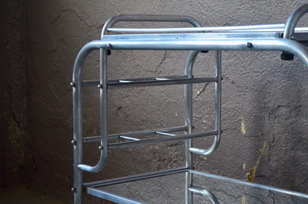 Raffinée, classe, élégante, précieuse… Les mots nous manquent pour décrire cette superbe desserte Art Déco. Tout en tube chromé, ce chariot de bar des années 30 est sobre par ses lignes, tout en dévoilant une subtile extravagance. Les plateaux en miroir renforcent un peu plus encore le raffinement de cette pièce aux allures Bauhaus. Aucun doute, ce petit meuble vintage est un vrai bijou… Facile à intégrer, il trouvera sa place dans une grande cuisine ou un salon chaleureux pour un sublime retour en arrière!