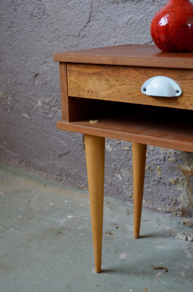 En provenance directe des années 60, voici une paire de chevets haut perchés. Une petite niche et un tiroir, pieds fuselés et lignes élancées résolument modernistes, ces tables de nuit possèdent de jolies lignes vintage. Pratiques avec leur compartiment et leur tiroir, il suffira d’y poser une paire de lampes colorées pour finaliser la déco de votre chambre ou du salon !