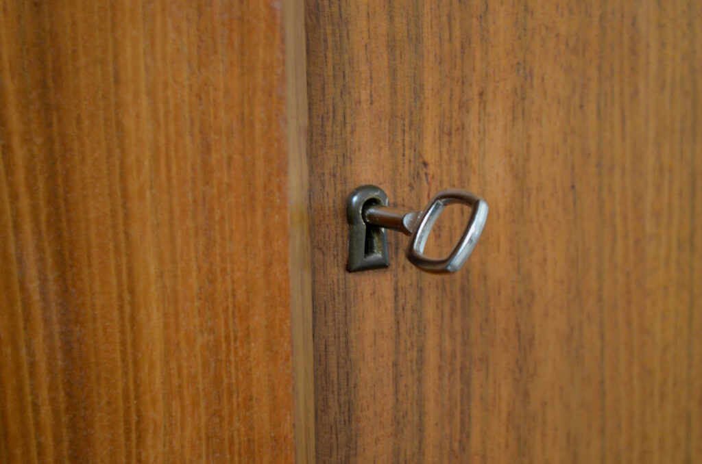 Ils ne sont pas courants ces meubles d’angle rétro, et pourtant si pratiques. Dans les espaces restreints, ils permettent de gagner de la place et de la profondeur. Ce spécimen est particulièrement pétillant et original avec ses portes centrales, ses flancs à pans coupés et ses petits pieds compas. La teinte dorée est lumineuse. Son format particulier fait de cette enfilade rétro des années 60 un petit bar ou meuble Hifi parfait!