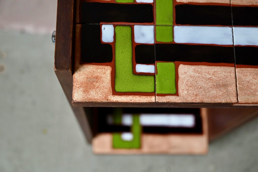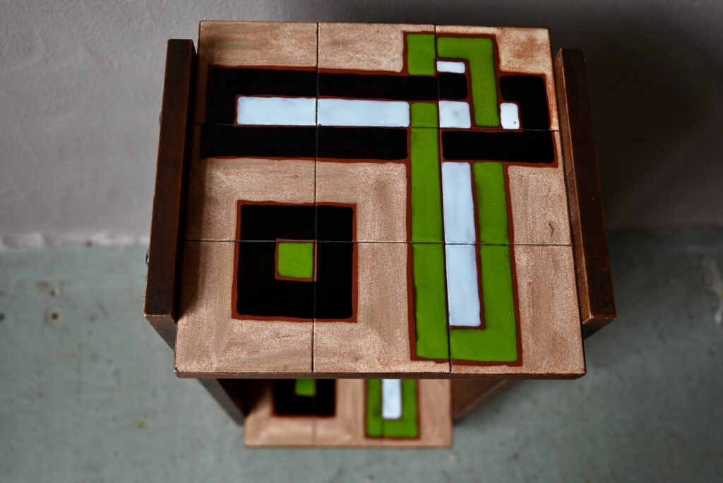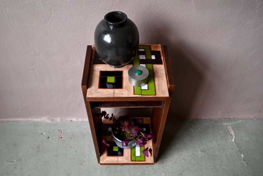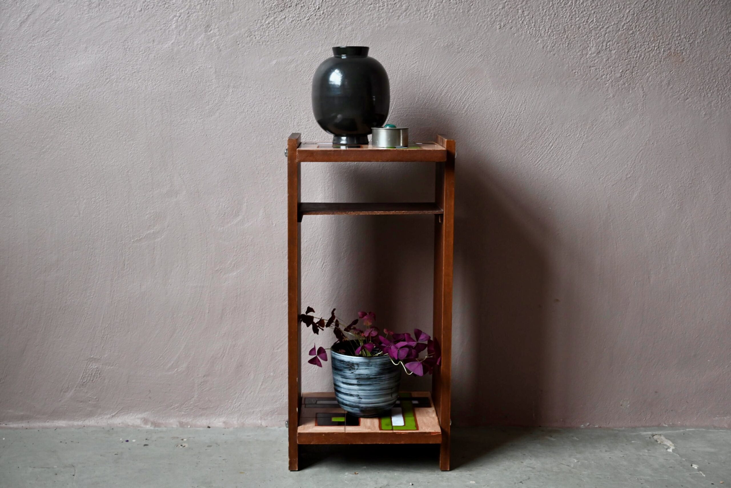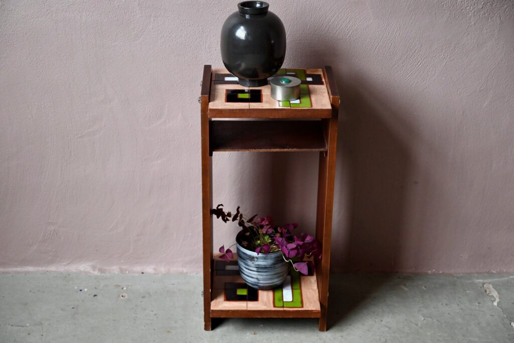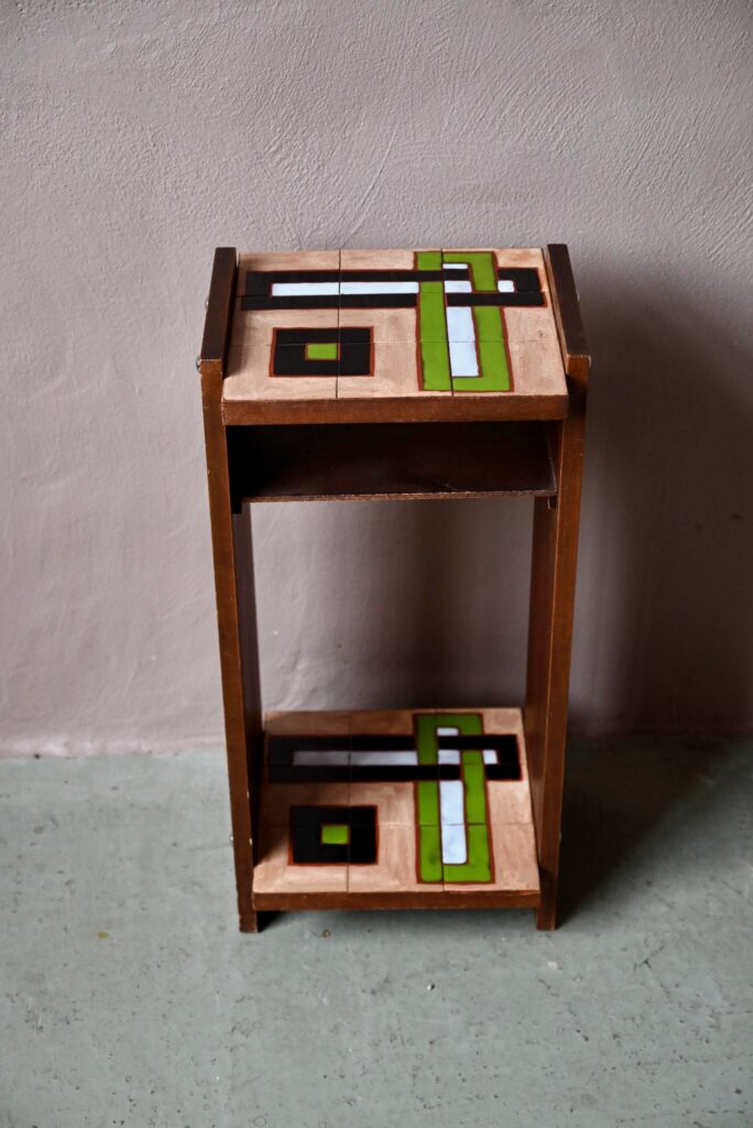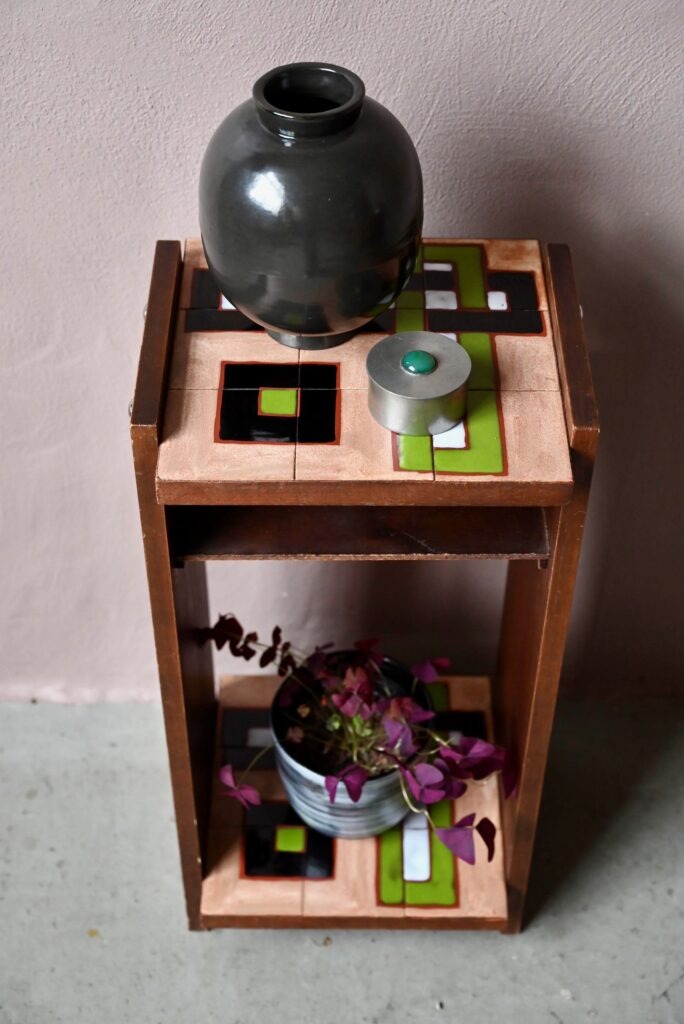 Nous avons aimé sa silhouette élégante Art Déco, ses dimensions compactes et la qualité des carreaux de céramique colorés… Dans un pur cette console, meuble d’accueil ou porte-plantes apportera son grain de sel à la déco intérieure. Ses dimensions atypiques participent à son charme et nous permettent de l’imaginer aussi console, table de nuit ou sellette.