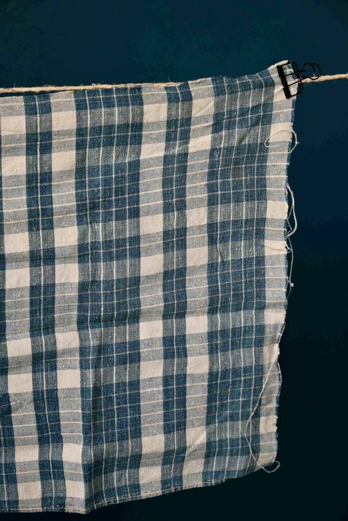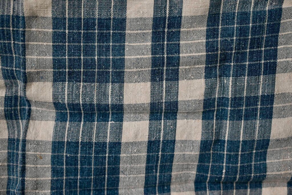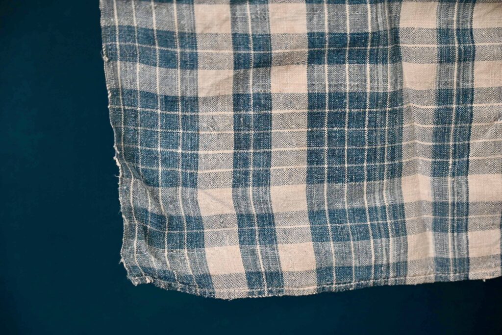 Le Kelsch est un tissu traditionnel de pur lin ou de lin mélangé à d’autres fibres végétales. Destinés à devenir du linge de lit, les Kelsch étaient traditionnellement offerts aux jeunes mariés. Patrimoine familial, les plus belles pièces n’étaient jamais utilisées et restaient dans les armoires polychromes, conservées comme des trésors précieux. Ce tissu est emblématique des productions artisanales alsaciennes (Région du Ried, Vallée de Sainte Marie Aux Mines). C’est un bel exemple d’art populaire, témoin d’une époque passée, mais touchant et actuel. Ce coupon est tissé en 2 couleurs avec des motifs à carreaux présentant de jolies variations.