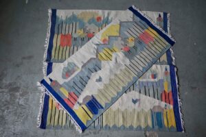 Cette petite couverture faite-main est en laine. L’assemble de carrés de tricot bleu et bordeaux est minutieux et joyeux! Parfaite pour réchauffer les petons dans le landau ou le berceau, le plaid rétro apportera une touche bohème posé sur le canapé ou le rocking-chair en rotin!