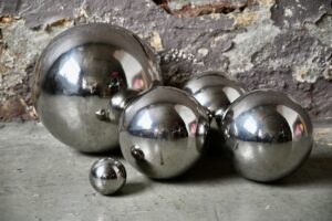 La structure tubulaire a conservé sa peinture verte d’origine et a gagné une discrète patine. Le plateau supérieur est très épais, en bois massif. Il possède traces de peinture et d’usage, la patine est vraiment intense et indus. La desserte ou guéridon possède également deux plateaux inférieurs dont l’un a été couvert par nos soins d’un papier peint rétro.