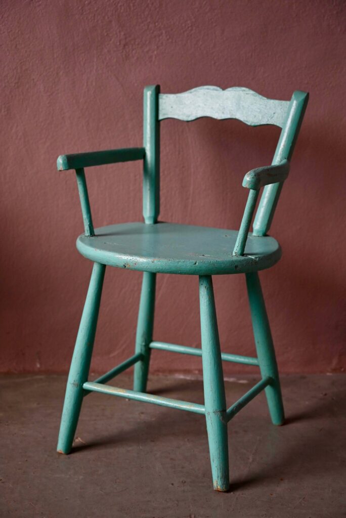 Cet ensemble bureau et fauteuil enfant date des années 40. Il possède une allure touchante, objets uniques au vécu incomparable. La couleur vitaminée de ce bureau à gradin a été patinée par les années pour un rendu unique. Son élégant piétement, la jolie frise sculptée dans la ceinture du bureau, les lignes du gradin, le fauteuil assorti aux jolis accoudoirs… confèrent beaucoup de style à ce mobilier enfant rétro. Doté de niches et d’un petit tiroir, il offre aussi un peu de rangement. Décoratifs à souhait, cet ensemble affichent des lignes tendres dans un esprit bohème, joyeux et coloré. Il sera le compagnon parfait des bricolages et coloriages pour les enfants.