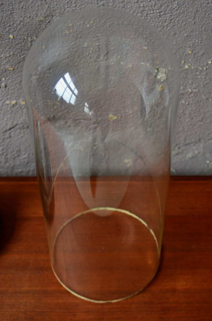 Cette très jolie cloche en verre soufflé à liseré doré et socle de bois noirci est également appelée globe d’horloge ou globe de mariés. La croix en métal dorée sculptée est fine et d’une belle brillance. Décoration élégante et bohème, de très grande taille, tout en finesse et délicatesse, elle est à utilisée pour mettre en valeur un bel objet d’art, une création personnelle ou une composition Ikebana.