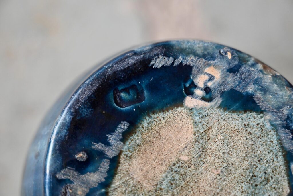 Le vase bleu de style 1900 est de belle taille, en très bel état. Il porte des marques de fabriques sur l’envers.