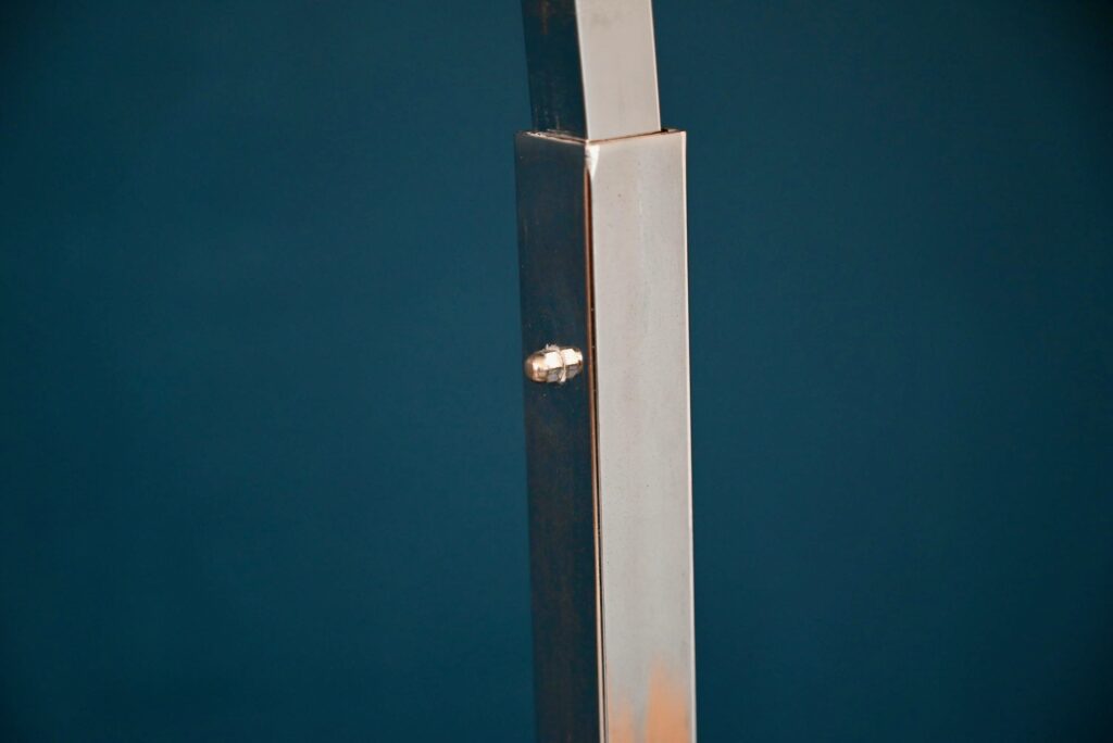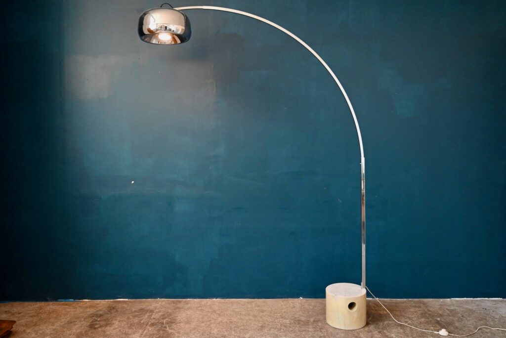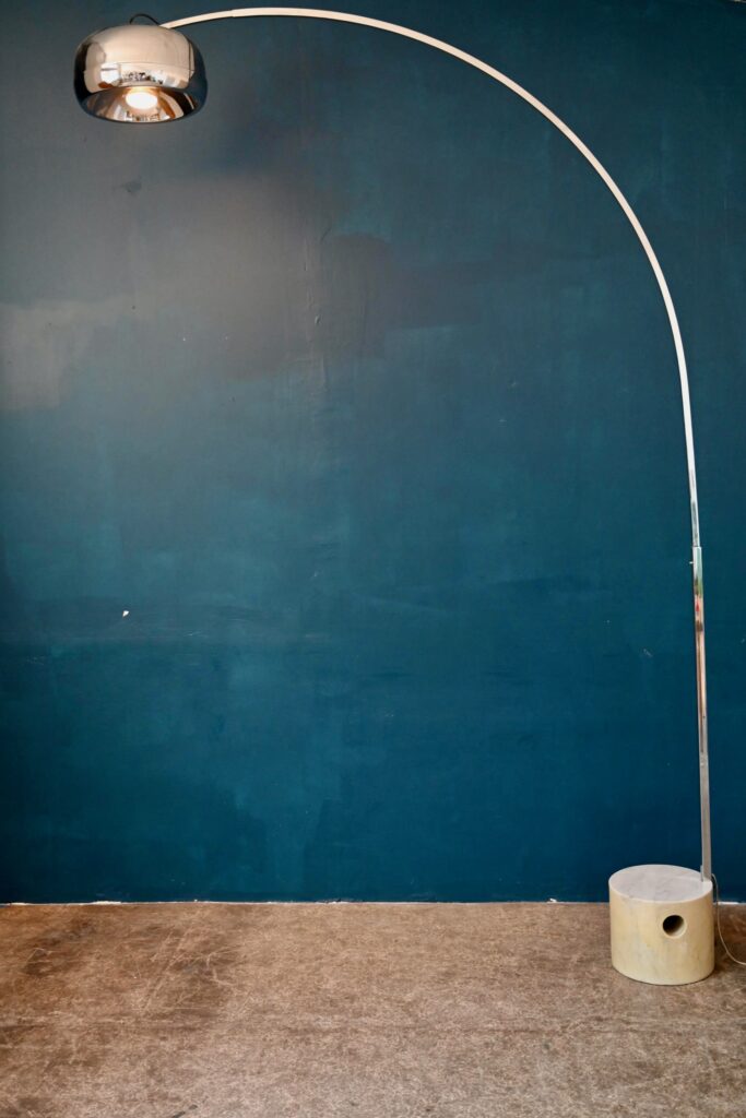 Cette lampe de sol italienne des années 70 est un trésor de délicatesse et d’équilibre. Lampadaire arc à l’allure fine, aérienne et délicate, elle célèbre un trait délicat, sobre et efficace. Le déflecteur chromé aux lignes Space Age est facile à intégrer tout en étant marquant. Le socle en marbre est sculptural et élégant. Iconique du design italien des années 70, c’est une pièce de charme au design efficace.