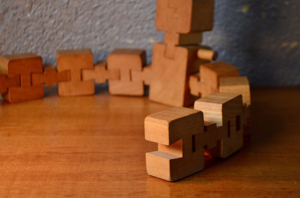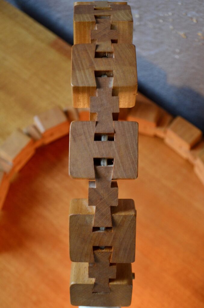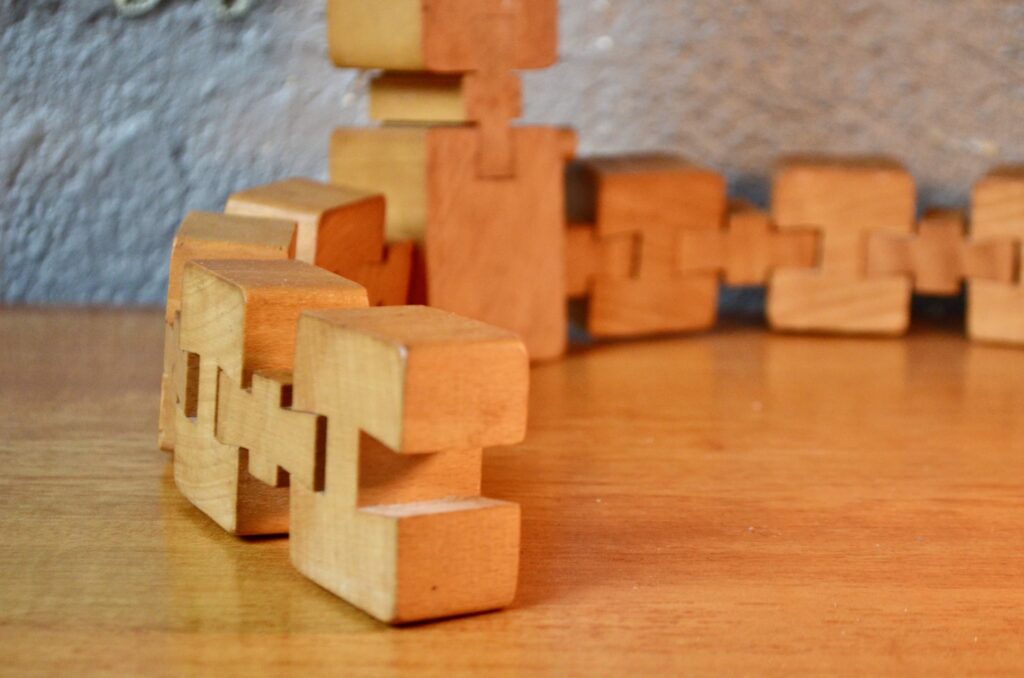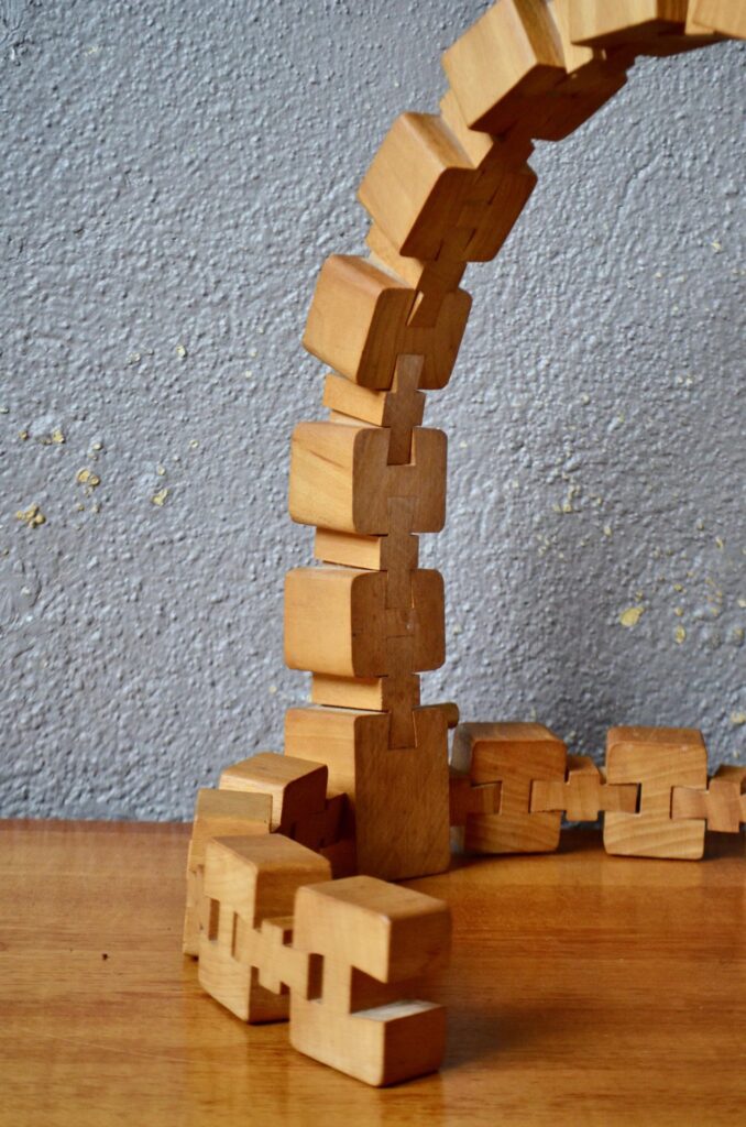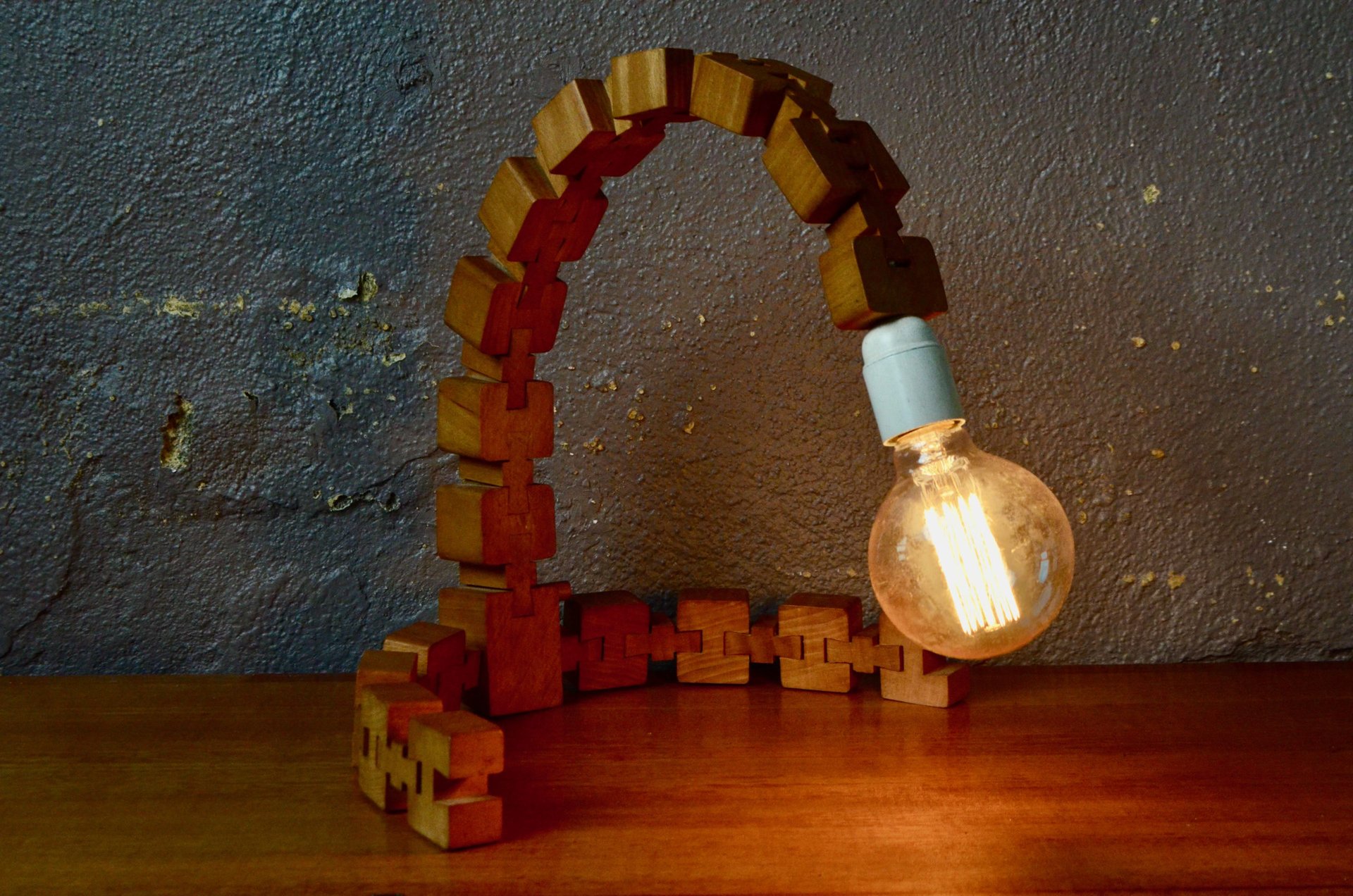 Parfaite représentante du design modulaire, cette lampe à poser est composée d’une série de cubes en bois massif reliés par des rotules mobiles. Telle une colonne et ses vertèbres, ils permettent de créer des courbes et d’adapter l’éclairage et l’esthétique à l’espace… ou à une lubie! Voici une lampe peu commune, idéale pour les amoureux de design vintage et tous ceux qui recherchent un luminaire à la fois fonctionnel et doté d’une forte personnalité.