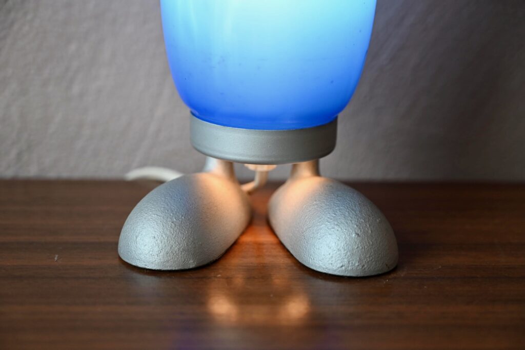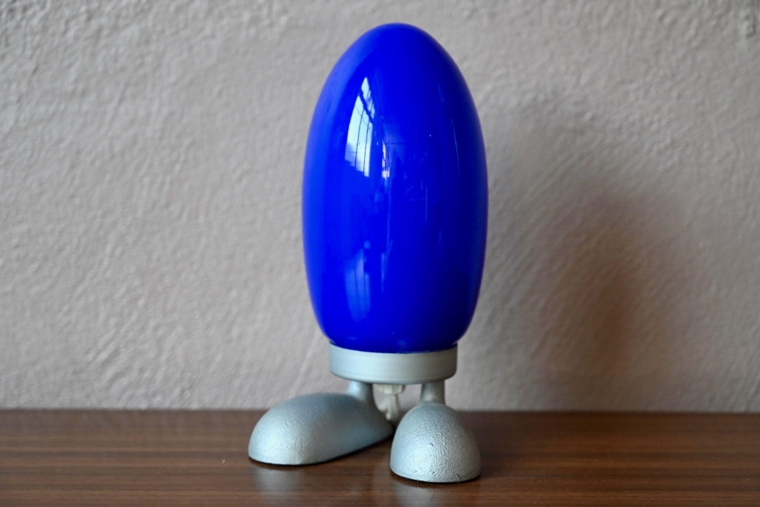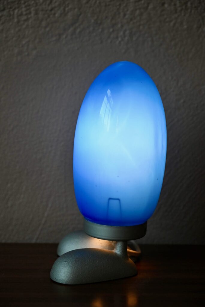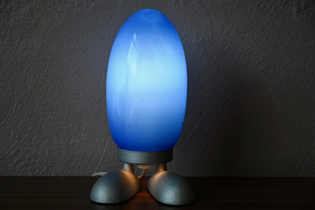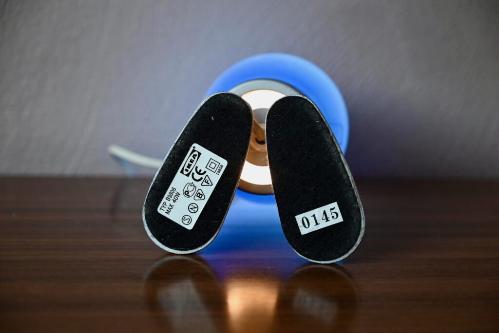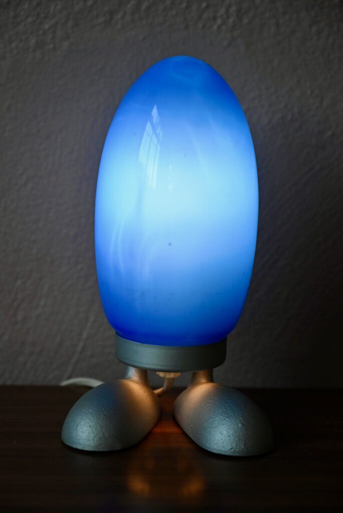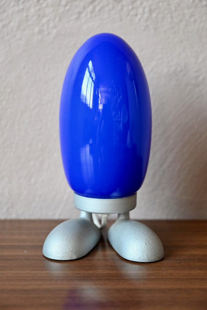 Comme un œuf de dinosaure bleu doté d’une paire de pieds… Étrange et attachante, la lampe Fjorton a été dessinée par Tatsuo Konno et éditée par IKEA dans les années 90. Dans un design minimaliste et ludique, elle est parfaite comme petite lampe d’ambiance ou comme veilleuse dans une chambre d’enfant.