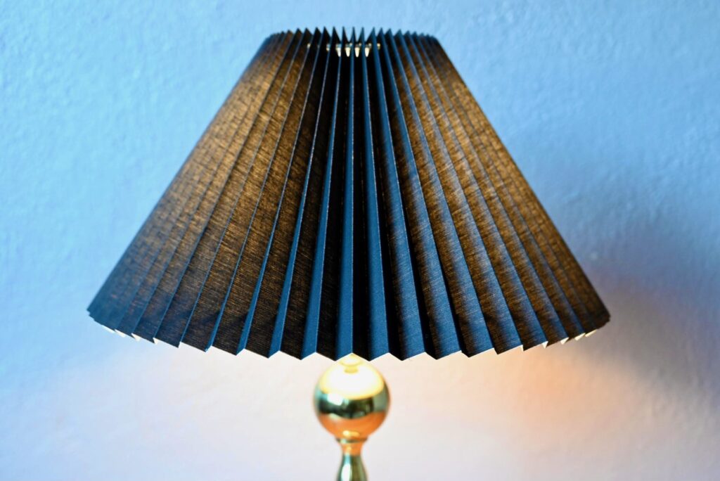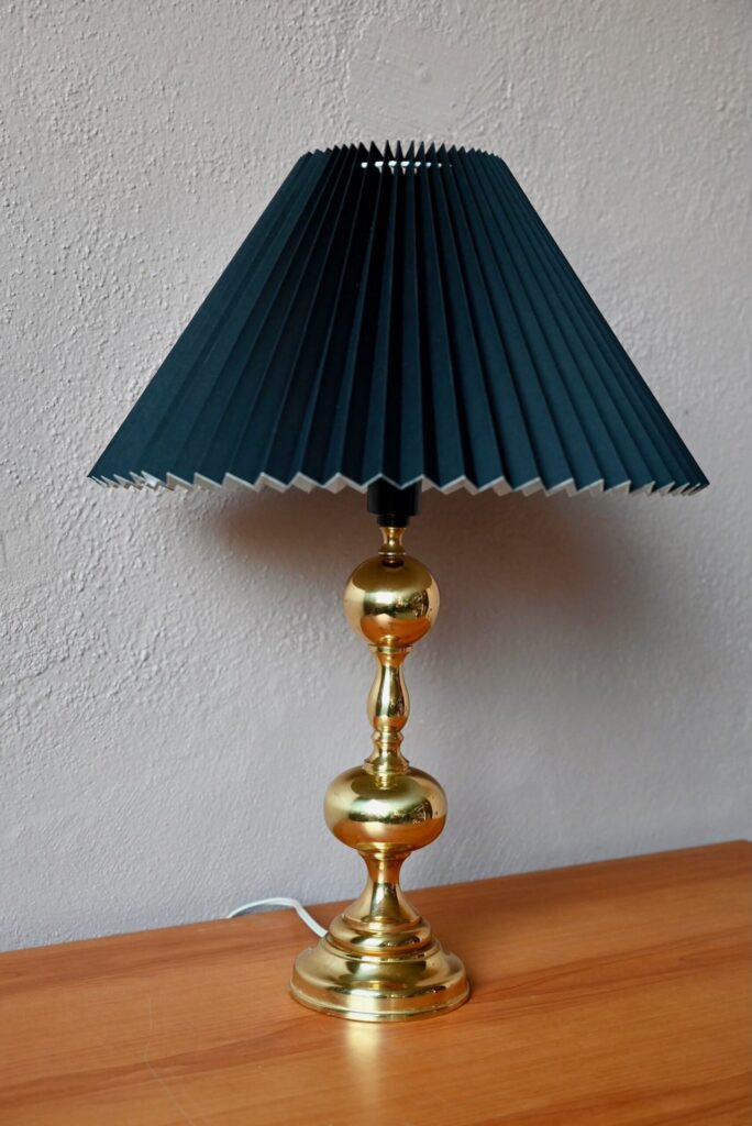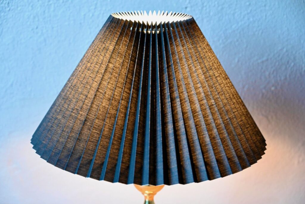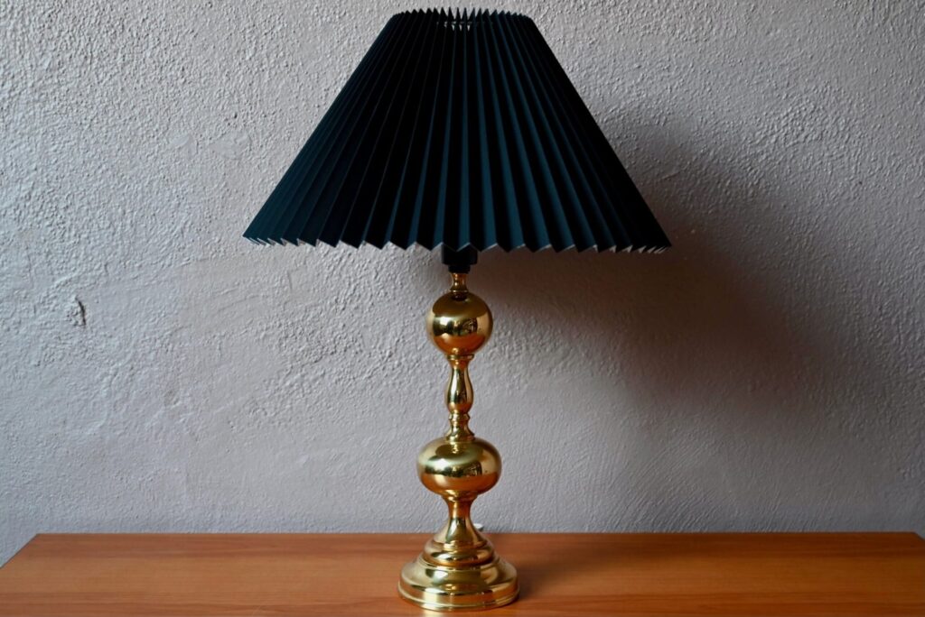 D’une élégance toute scandinave, cette belle lampe, tout en laiton doré, est une pièce déco à l’allure étincelante. Démonstrative par sa grande taille, elle joue sur les contrastes entre l’or de son pied aux lignes organiques et son abat-jour plissé noir typiquement danois. Lampe de table et pièce de design exigeant, elle saura apporter une touche de lumière pour une ambiance éclatante.