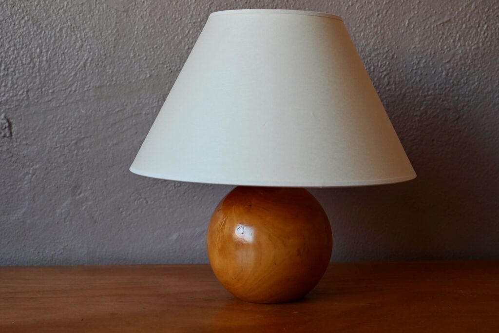 Cette jolie lampe est une production intéressante des années 70. Une large boule de bois massif doré tient lieu de socle, pour un effet décoratif élégant et sobre. Parfaite lampe d’ambiance, elle apportera une touche originale à la déco intérieure.