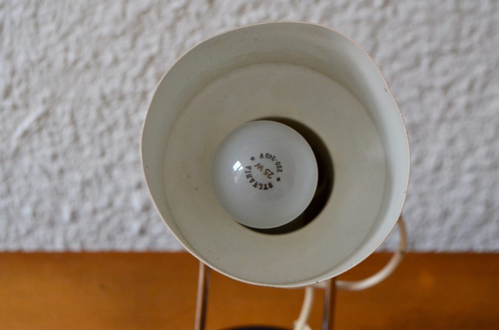 La lampe de bureau est orientable. Quelques rares traces d’usage sont visibles. L’étiquette Disderot est toujours présente sous le socle.