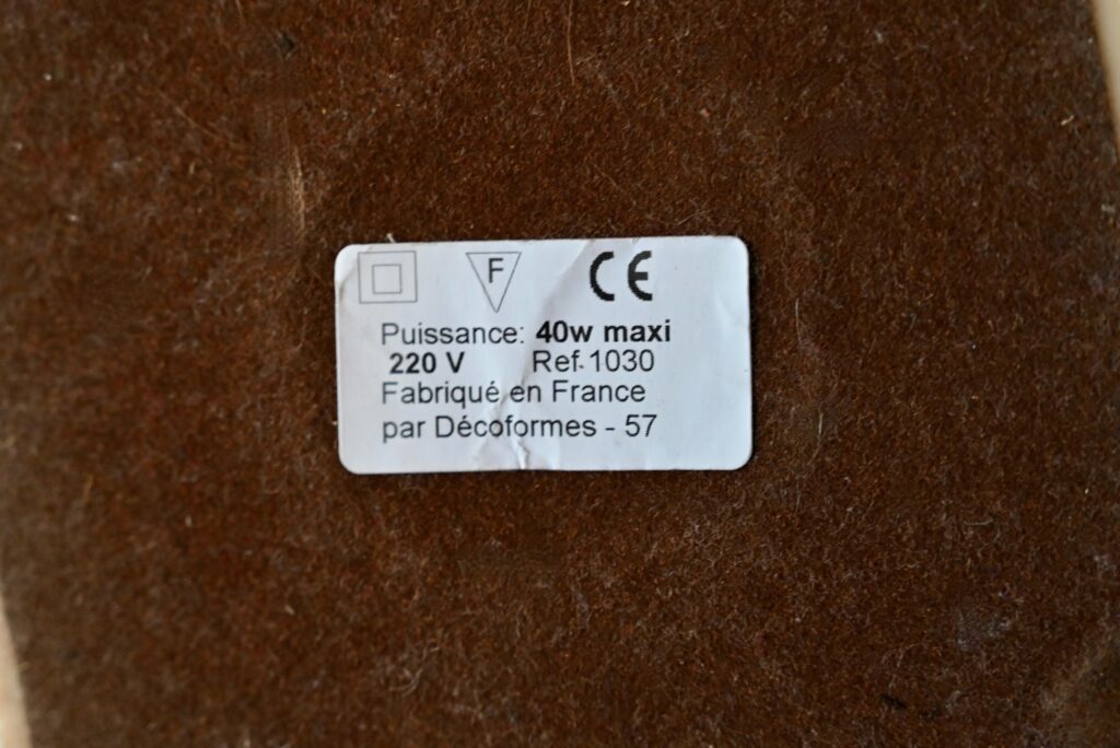 Le design de cette lampe de table date des années 90. Elle est en bon bel état, fonctionnelle et livrée avec son ampoule. De petites traces d’usage sont visibles.