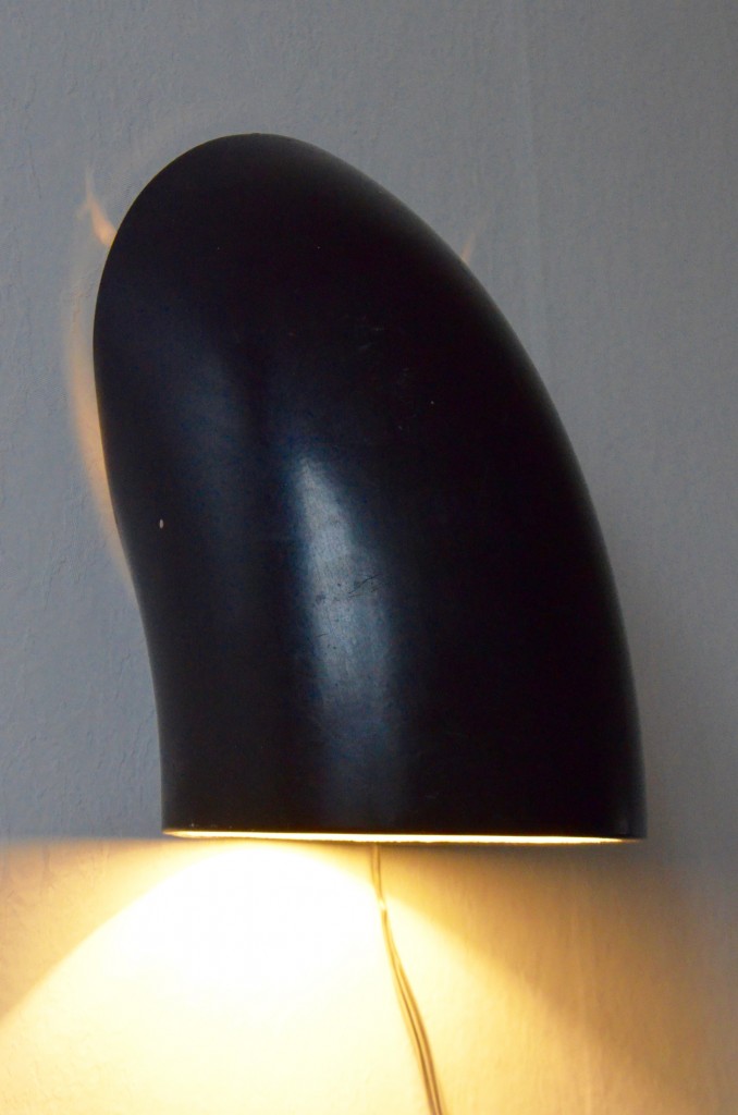 La lampe est en métal peint. Il s’agit du modèle 1196 dit Gomito, dessiné par Elio Martinelli et produit par Martinelli Luce. L’électricité est fonctionnelle. Elle est estampillée et étiquetée à l’intérieur. Elle possède quelques traces d’usage. Elle peut être utilisée en applique, faisceau lumineux dirigé vers le haut ou vers le bas, mais également en lampe à poser.
