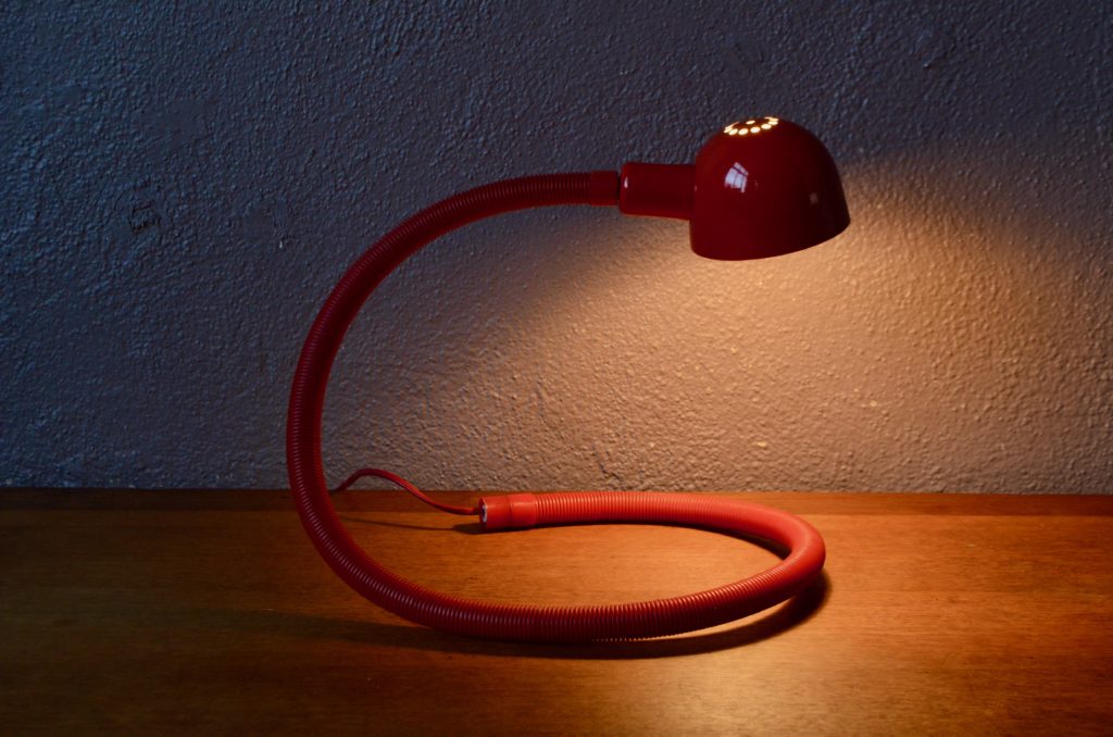 La lampe de bureau rouge est orientable, flexible en tout sens et adaptable à toutes les situations. Elle est électrifiée d’origine et parfaitement fonctionnelle. “Hebi” d’Isao Hosoe était produite par Hebi studio pour Valenti Luce.