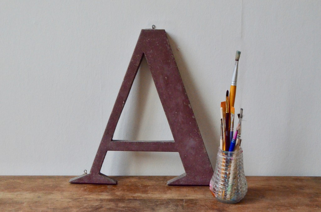 En devanture de commerce, ces lettres d’enseigne ont bravé les intempéries pour appeler le chaland! En métal de couleur “aubergine”, leur patine est à tomber, laissant entrevoir le zinc par endroit. Dans une police joliment dessinée, nous disposons des lettres A, N, T, E, U et R… Un restaurant vraisemblablement… Posés sur un meuble ou accrochés dans la chambre, ces petits objets déco apporteront une note indus et authentique qui raviront les amateurs de curiosités…