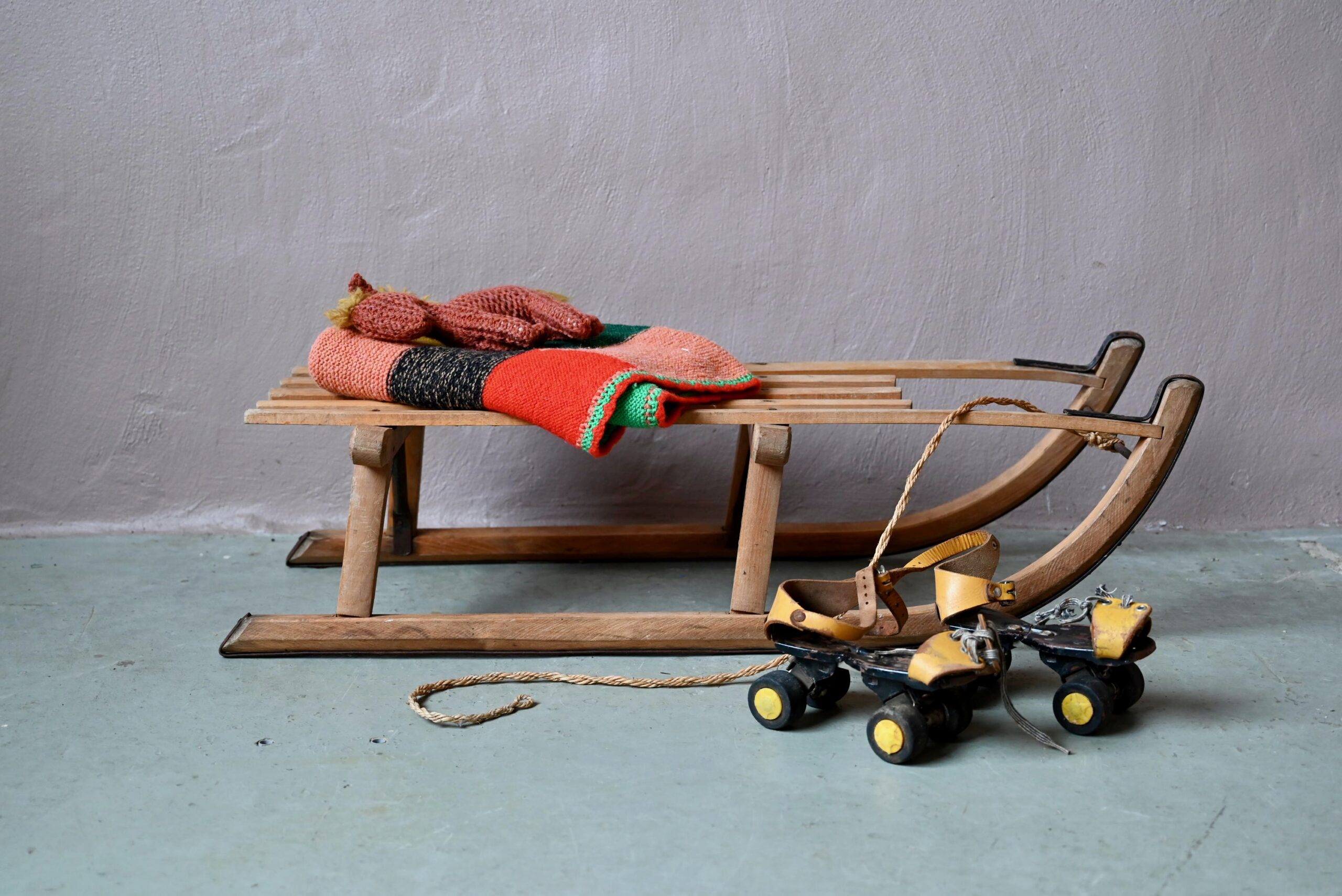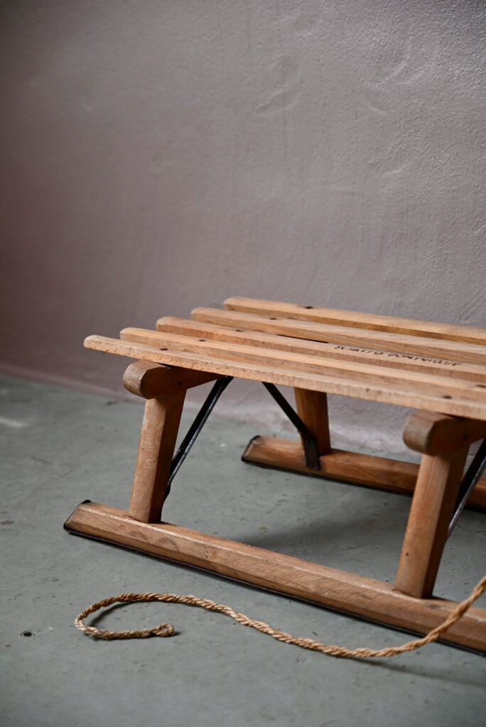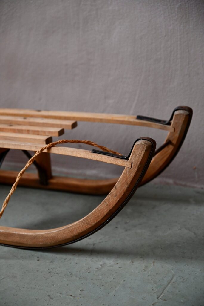 Voici un bolide qui rappellera des souvenirs de neige à certains!… Cette jolie luge rétro en bois et métal sera ravie de reprendre du service sur les pentes enneigées ou de vivre des aventures moins mouvementées en devenant un accessoire déco.