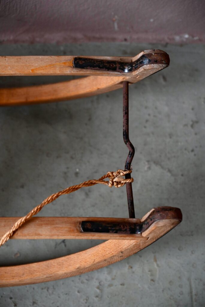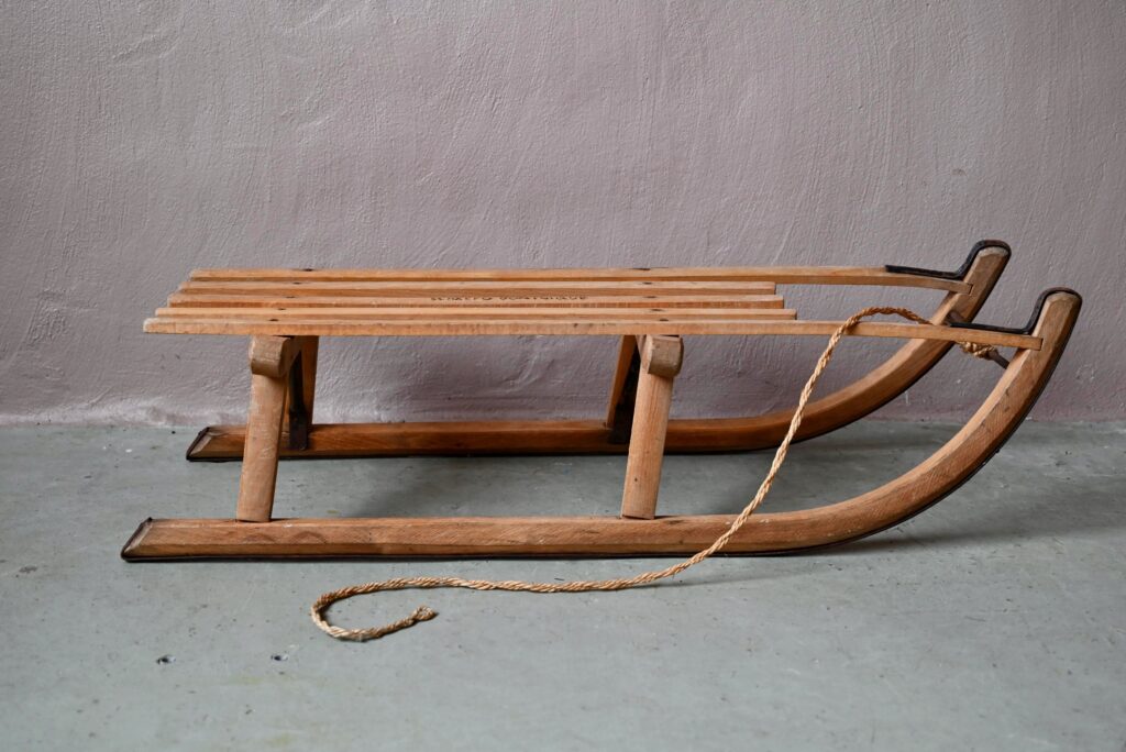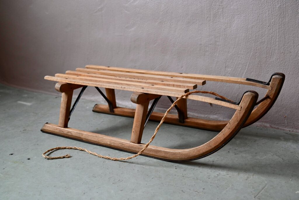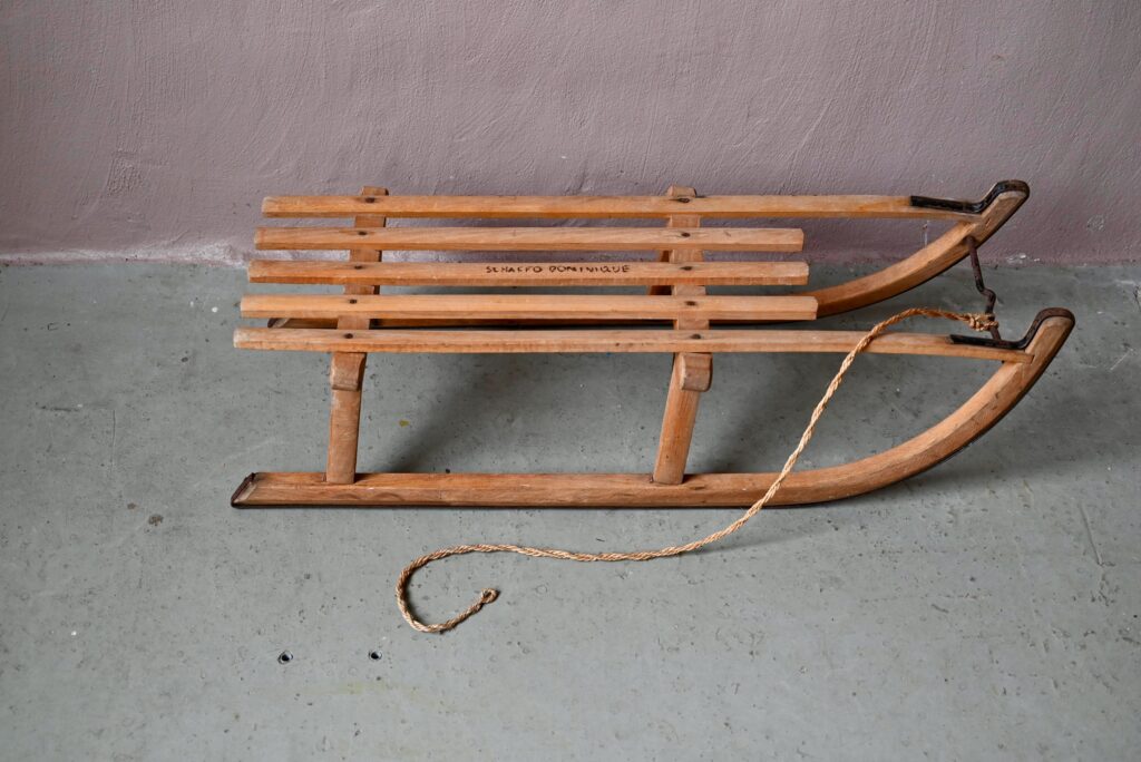 Luge ancienne en bois et métal Dominique
