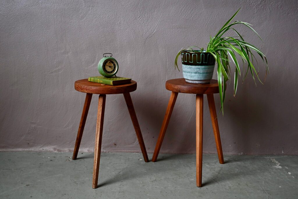 Une assise épaisse portée par un piètement aux lignes minimalistes et rustiques, ces tabourets de ferme nous touchent par leur dépouillement et leur caractère d’une grande sincérité. Dans un esprit bohème et wabi-sabi, ce sont des pièces de mobilier simples et essentielles. On les imagine guéridons minimalistes, portes-plantes primitifs, tables de nuit ou assises d’appoint dans le salon, non loin de la cheminée et de la peau de bête!