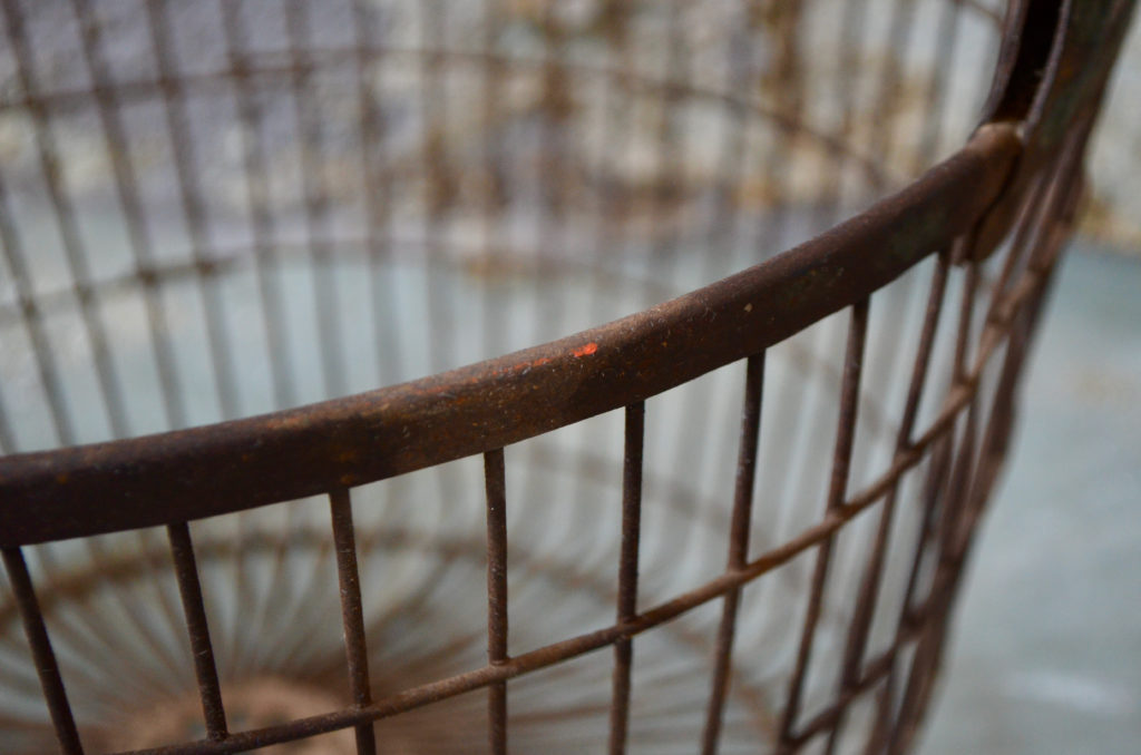 Les paniers sont anciens et datent des années 50. Ils sont en métal et servaient au stockage des patates dans les caves. Ils sont en très bel état, très peu déformés et ne présentent que de rares traces d’oxydation. Deux poignées permettent de les déplacer facilement. Le prix est pour une pièce.