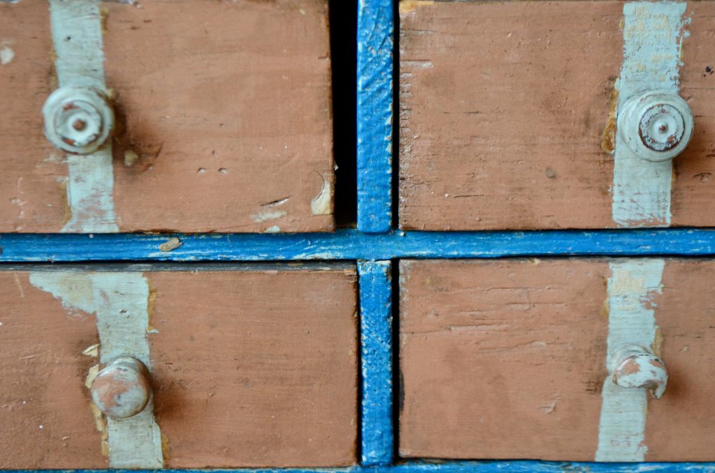 Ce petit meuble d’atelier à l’incroyable patine servait pour le rangement de petites pièces. Nous y avons retrouvé des vis et pièces de mécanisme. Son vécu authentique lui offre un look industriel et bohème incroyable. Le meuble à tiroirs est doté de poignées en bois tourné. Nous l’imaginons sur une table de travail, un bureau ou un établi pour y ranger méticuleusement de petits éléments de bricolage ou de création, mais également comme boîte à bijoux, posé sur un meuble de salle de bain.