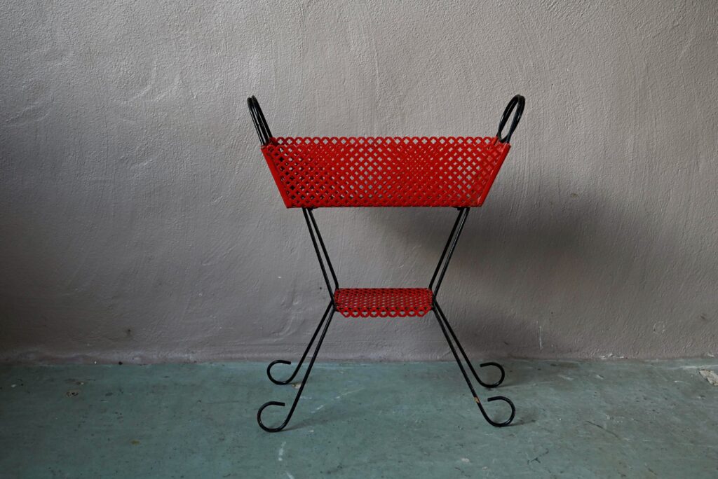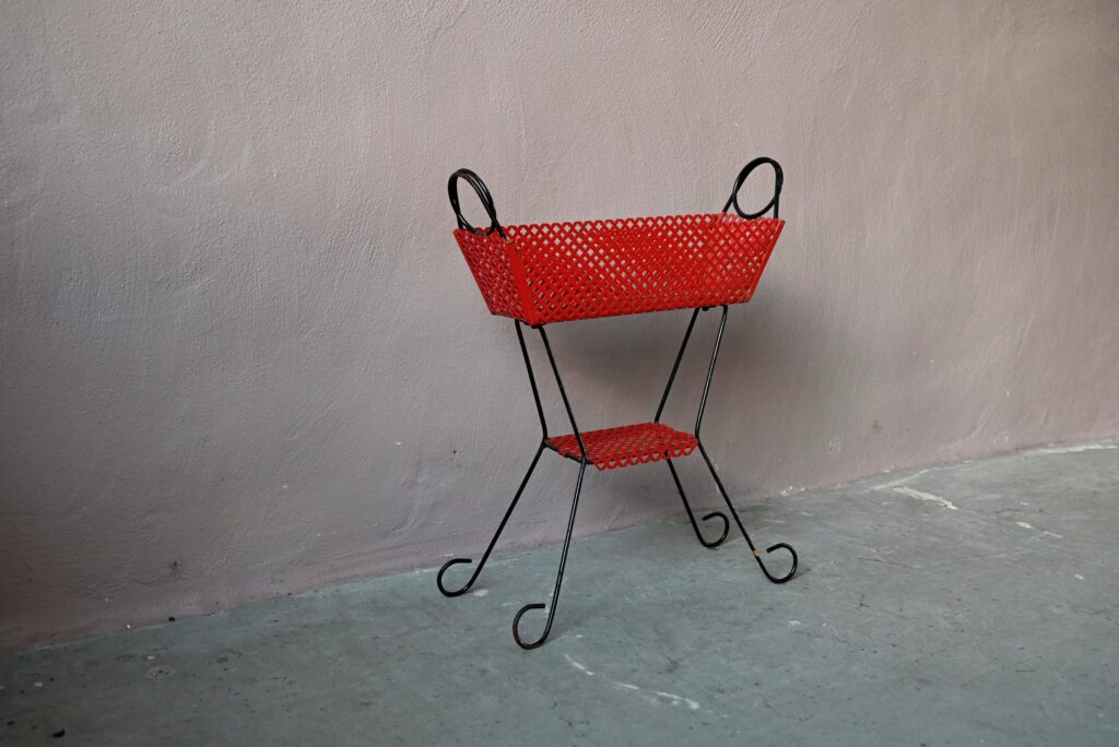 Voici un porte-plantes hors du commun, typiquement midcentury. Plein de vitamines, il mettra en scène nos plus jolies plantes avec un brin de folie unique! Piétement en métal noir, petit bac en métal perforé rouge, cette jardinière des années 50 mettra du pop et du pep’s dans notre petite jungle urbaine!
