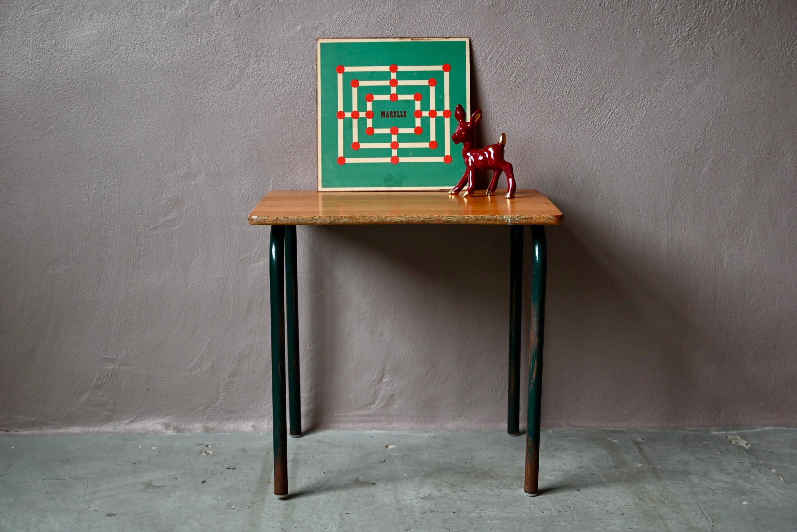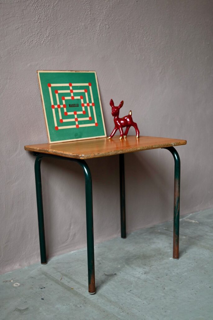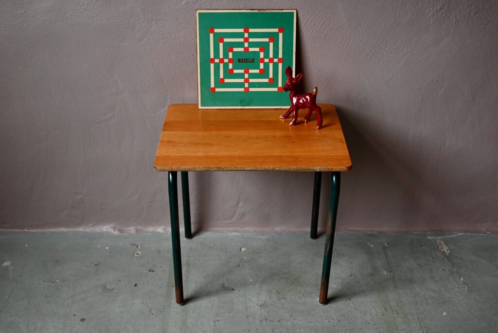 Ce pupitre d’école date des années 60. Simple et touchant, le petit bureau enfant est un classique du mobilier rétro. Plateau en bois, encoche à stylos, piétement tubulaire en métal, les lignes sont sobres et essentielles. Idéale dès 2ans, cette table d’écolier retrouvera vite une place auprès d’un bambin, ravi d’apprivoiser ses crayons pour y dessiner ses premiers bonshommes!