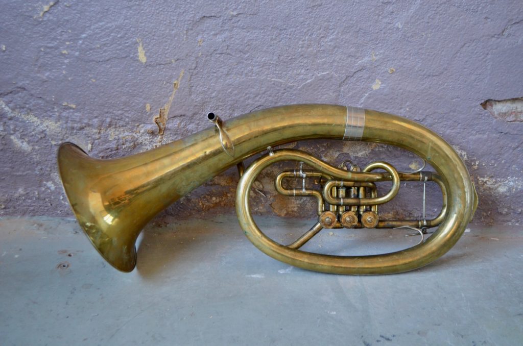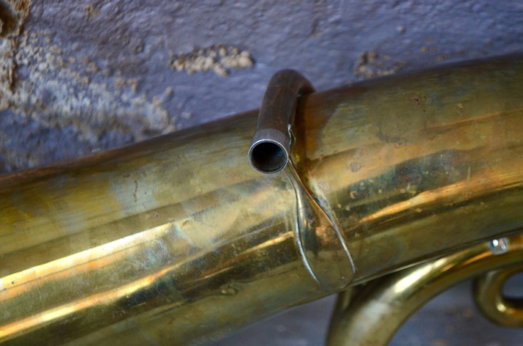 Ce cuivre est ancien mais en bel état général. Il est signé Weltklang sur le pavillon. Il est patiné par endroits, ce qui participe à son charme. En laiton, il présente des détails sympathiques. L’embouchure est manquante, les pistons sont un peu grippés. C’est un splendide objet déco mais avec un peu d’attention il saura rapidement redevenir un bel instrument de fanfare.