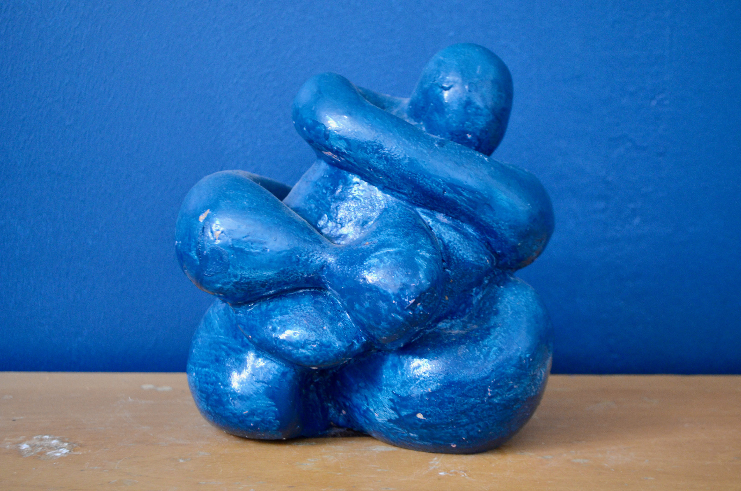 La statue est en plâtre modelé et patiné de bleu. C’est une production italienne vintage, son auteur est anonyme. Les formes sont libres, sensuelles et suggestives. La sculpture est en très bel état, quelques traces de frottement sur la patine.