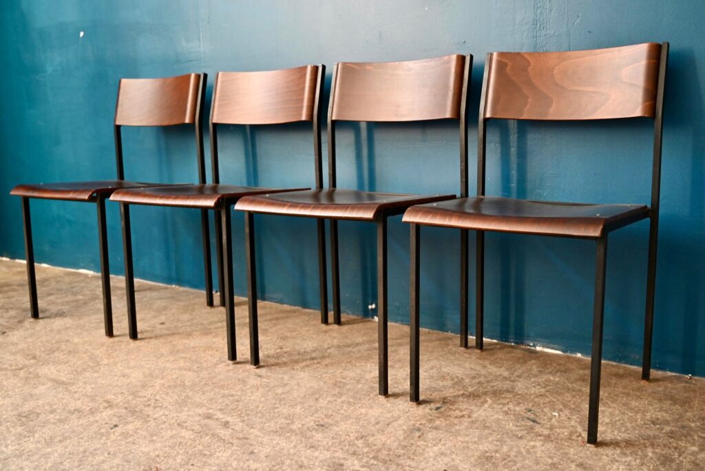 Un design minimaliste, un mélange des matières subtil et intemporel, il n’en fallait pas plus pour nous séduire. Cette série de 50 chaises des années 70 est originale, facile à adopter. Nous aimons la finesse du piétement tubulaire de section carrée, en métal noir. L’assise et le dossier sont en contrecollé thermoformé, de teinte profonde. On aime beaucoup le galbe du dossier. Confortables et ergonomiques, elles feront mouche autour d’une table aux lignes modernistes ou d’inspiration indus.