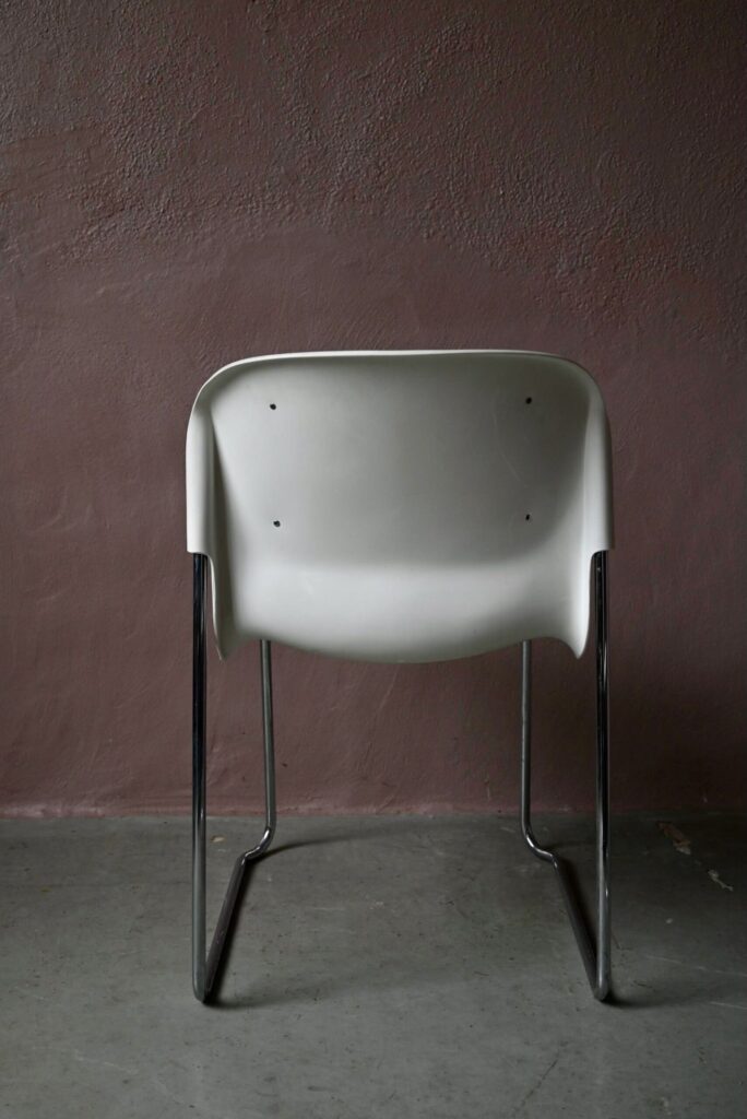 On les croirait sorties d’un décor de film de science fiction… Futuristes, aérodynamiques et décoiffantes, ces chaises Gerd Lange sont réalisées en plastique moulé monobloc et chrome. Ce modèle Drabert SM400K est empilable et confortable grâce à une galette d’assise et de dossier en lainage, marron ici. Légères, elles sont destinées à l’intérieur, chaise à manger autour d’une table en verre, chaises de bureau. Elles feront leur petit effet quoi qu’il arrive!