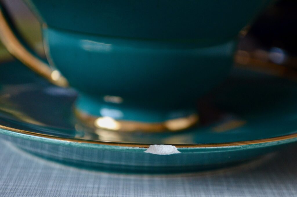 Réalisé en porcelaine fine, ce service est ancien. Son état général est bon, mais il présente des traces d’usage. L’anse de la cafetière a fait l’objet d’une ancienne réparation par collage à sa base, et quelques éclats sont à noter sur les rebords de certaines soucoupes, comme visible sur les photos.