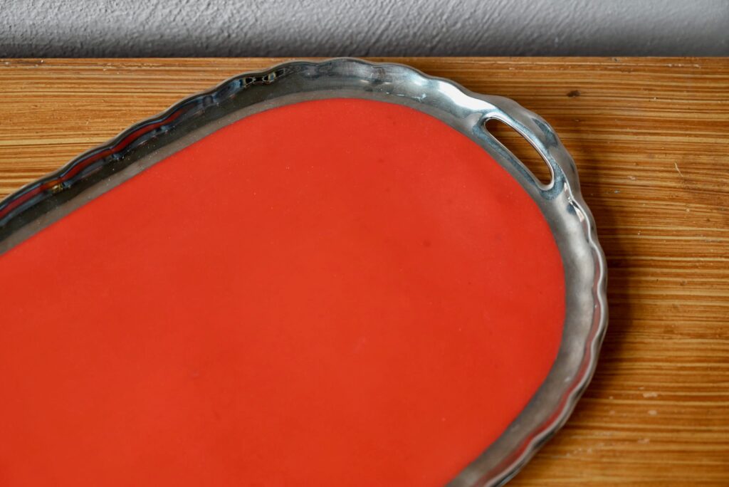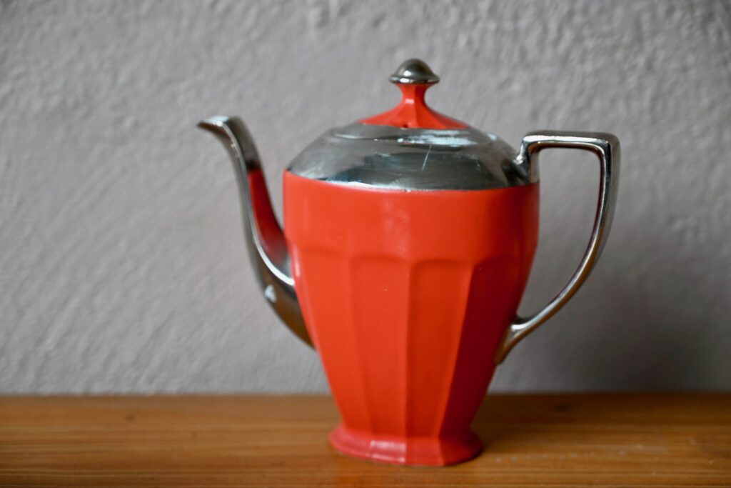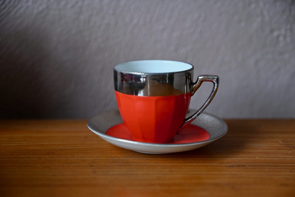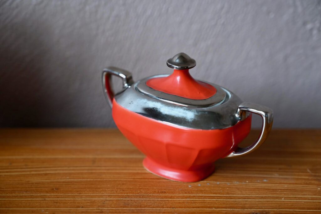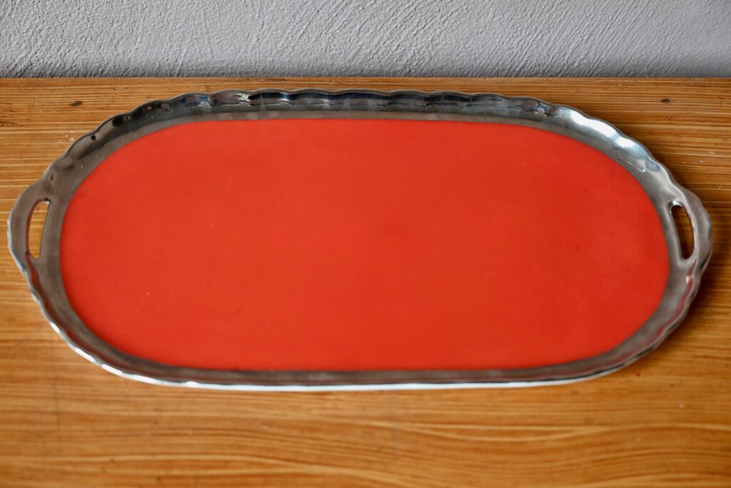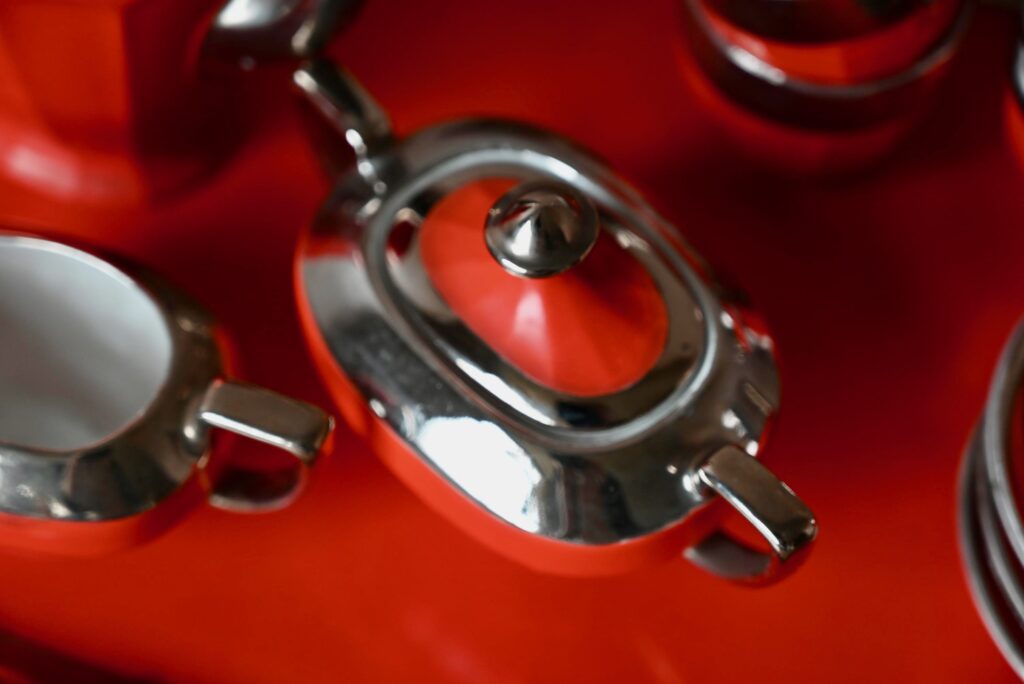 Production Tchèque de l’entre-deux-guerres, ce magnifique service à café sur plateau, aux coloris éclatants, se révèle dans un pur style Art Déco, à la fois énergique et élégant. Fabrique réputée et haut de gamme, Victoria China nous régalera avec ses couleurs et sa classe à l’heure des mokas et cafés crèmes.